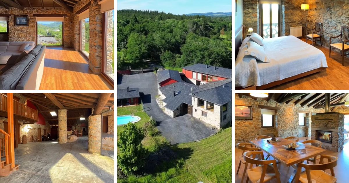 La inmobiliaria 247 Real Estate ha dado a conocer a través de sus redes sociales cómo es esta espectacular vivienda que está a la venta en Fornelas, en la Ribeira Sacra lucense. Se trata de una casona que fue reformada en el 2013 y que "te dejará sin aliento". Cuenta con dos plantas en las que dispone de ocho habitaciones, ocho baños y un jardín con piscina.