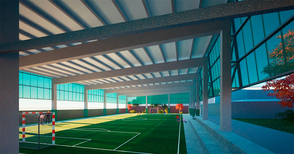 La actuación que se realizará en el colegio Celso Emilio Ferreiro supondrá la mejora de forma integral de las instalaciones exteriores del centro educativo, generando nuevos espacios cubiertos para el uso de las alumnas y alumnos durante todo el año. Las infografías confirman como la estructura permitirá la práctica de modalidades deportivas, posibilitando que, por ejemplo, se pueda jugar al futbito independientemente del tiempo que haga en la ciudad olívica
