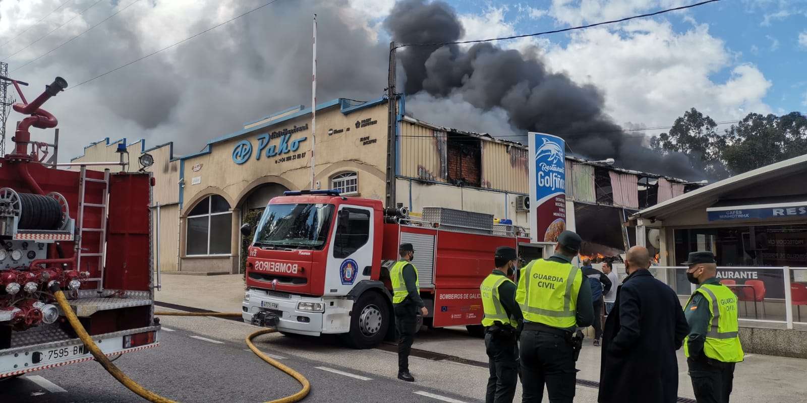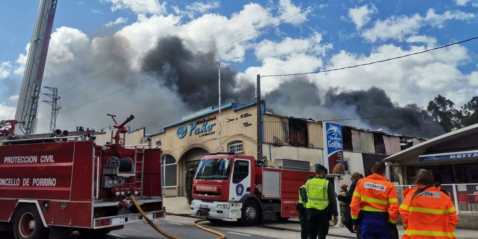 Las primeras informaciones indican que las llamas afectan únicamente a una nave industrial situada en la carretera hacia Salceda. Se trata de Distribuciones Pako, una empresa que se dedica a la distribución en España, Portugal y Andorra de material para canteras, túneles o sondeos mineros. La nave cuenta con oficinas, almacén y taller. Fuentes oficiales explican que el fuego estaría ya controlado, a pesar de la fuerza de las llamas debido a la presencia de aceites, y se espera que pueda ser extinguido en las próximas horas.