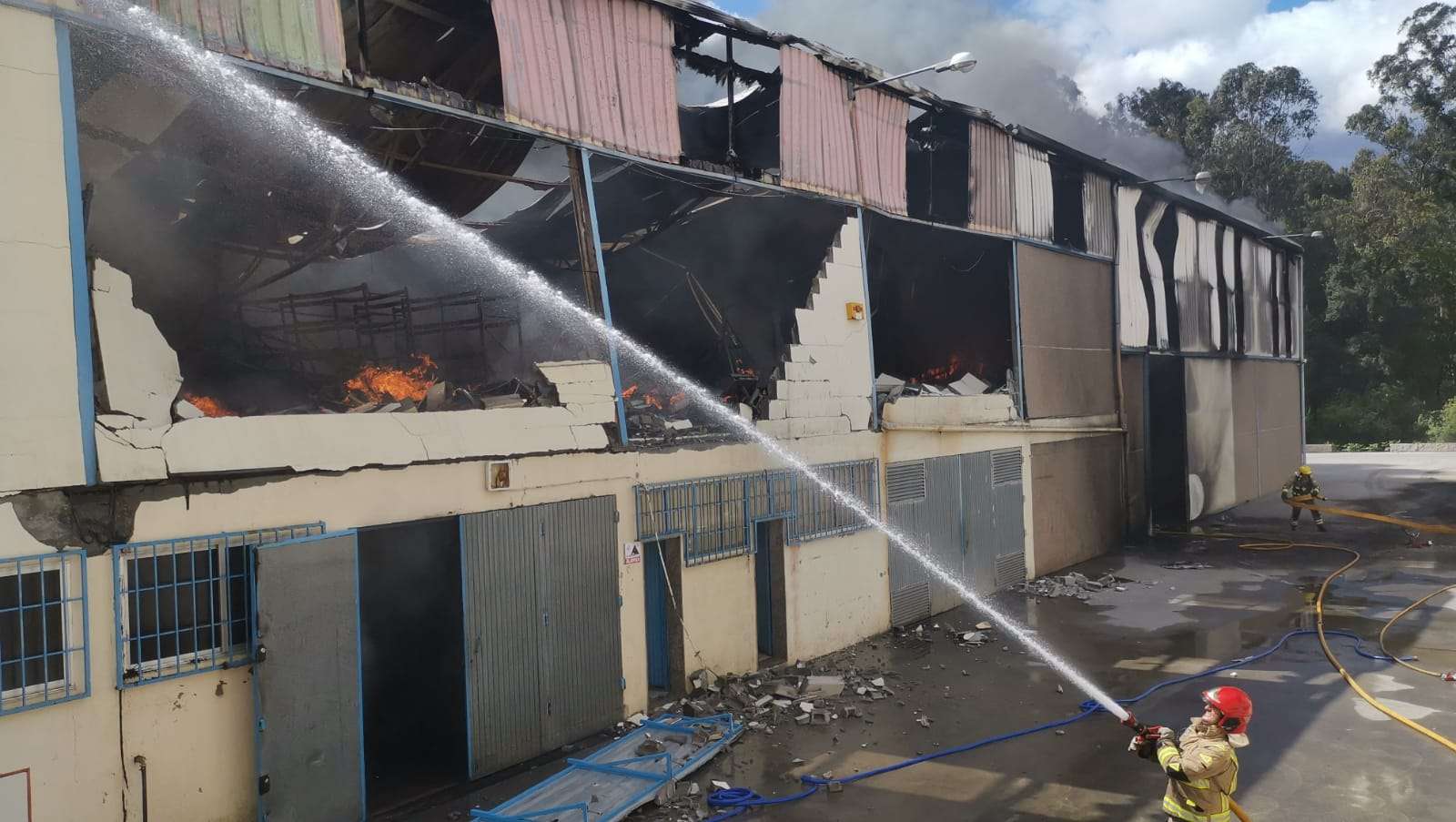 Hasta el lugar de los hechos se han trasladado ya los Bomberos de O Porriño, así como la Policía Local, la Guardia Civil y Protección Civil. También se ha enviado a Urxencias Médicas, aunque desde el CAE 112 confirman que finalmente todo el personal de la nave "está localizado y en buen estado". También se ha informado a los servicios de extinción de Mos y el GES de Ponteareas. El operativo cuenta con una cisterna de la Axencia Galega de Emerxencias de gran capacidad para suministrar agua a los medios de extinción. Al lugar se ha traslado ya el regidor de la localidad, Alejandro Lorenzo.