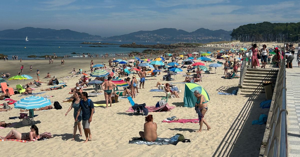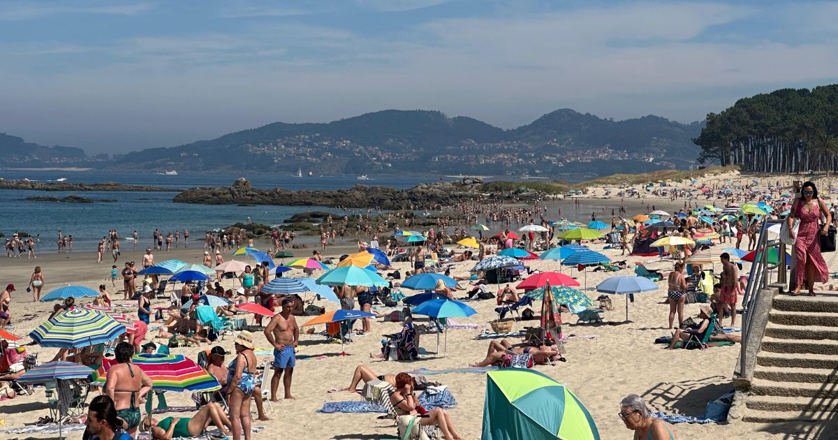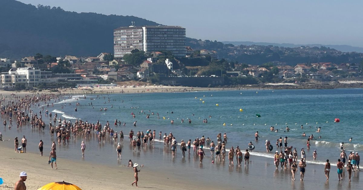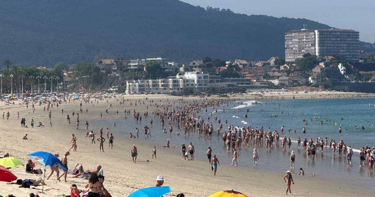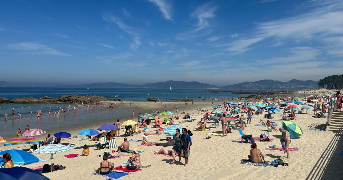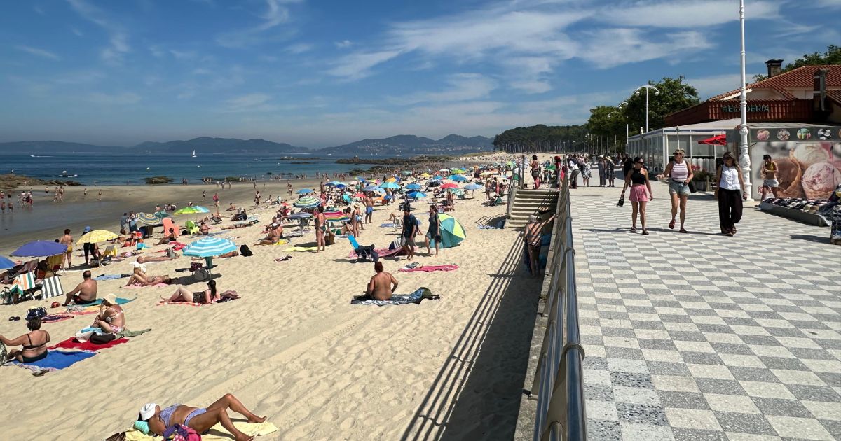 Un episodio de altas temperaturas que se espera se alargue hasta el próximo martes en toda Galicia y que empujará a muchas personas, especialmente las que ya disfruten de sus vacaciones, a los arenales de Vigo y el resto de las Rías Baixas.