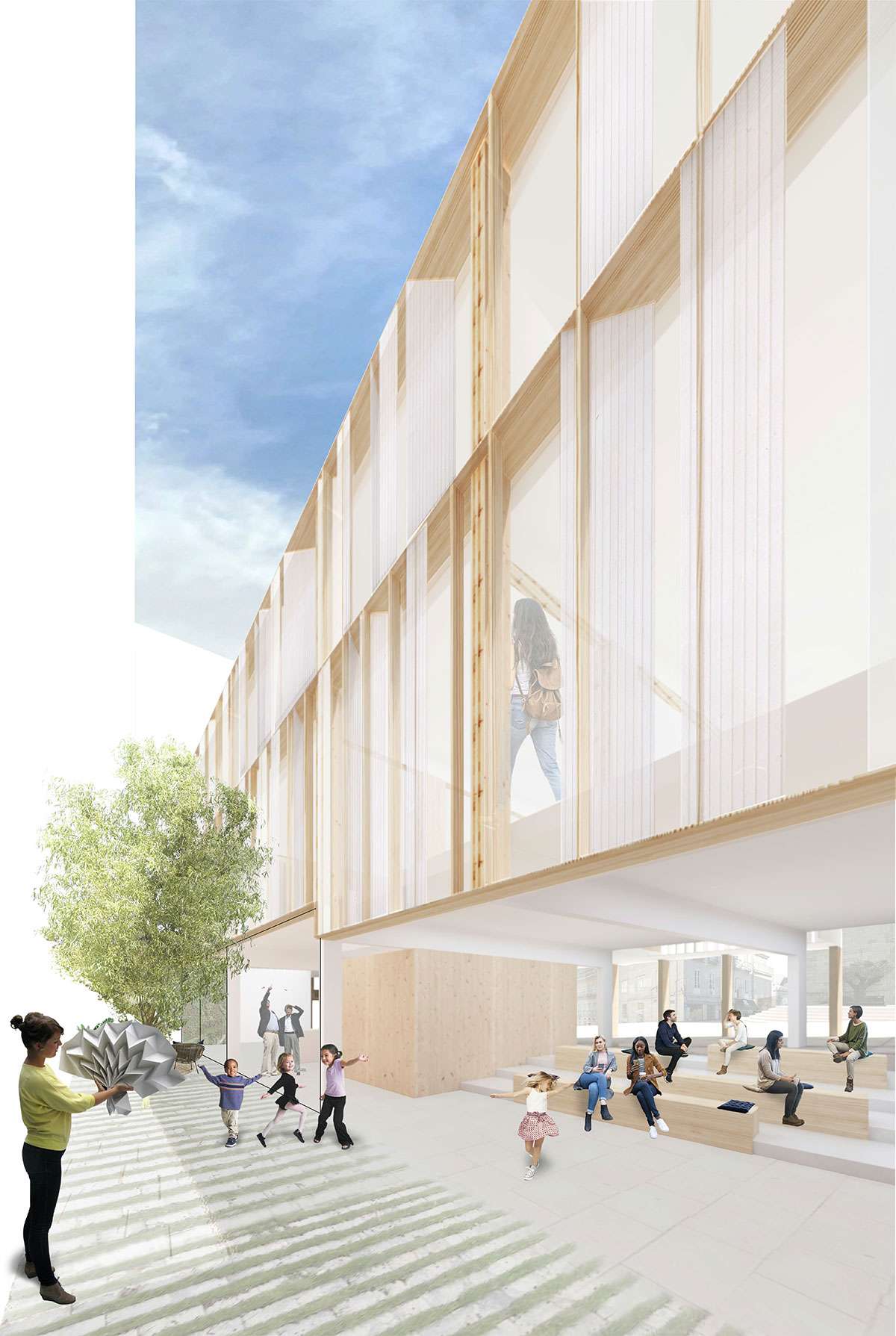 Se concibe como un edificio convertido en centro multifuncional mutable en el tiempo. Un "ágora a cubierto", lugar de relación intermedio entre lo puramente público, la plaza, y lo puramente privado: los usos que se desarrollan al margen del exterior. Se plantea un contenedor versátil, con capacidad para evolucionar conjuntamente con el barrio y la sociedad que lo disfruta. Es decir, el interior se podrá ir modificando en función de las necesidades y usos de cada momento, creando espacios mayores o menores, abiertos o cerrados entre ellos.