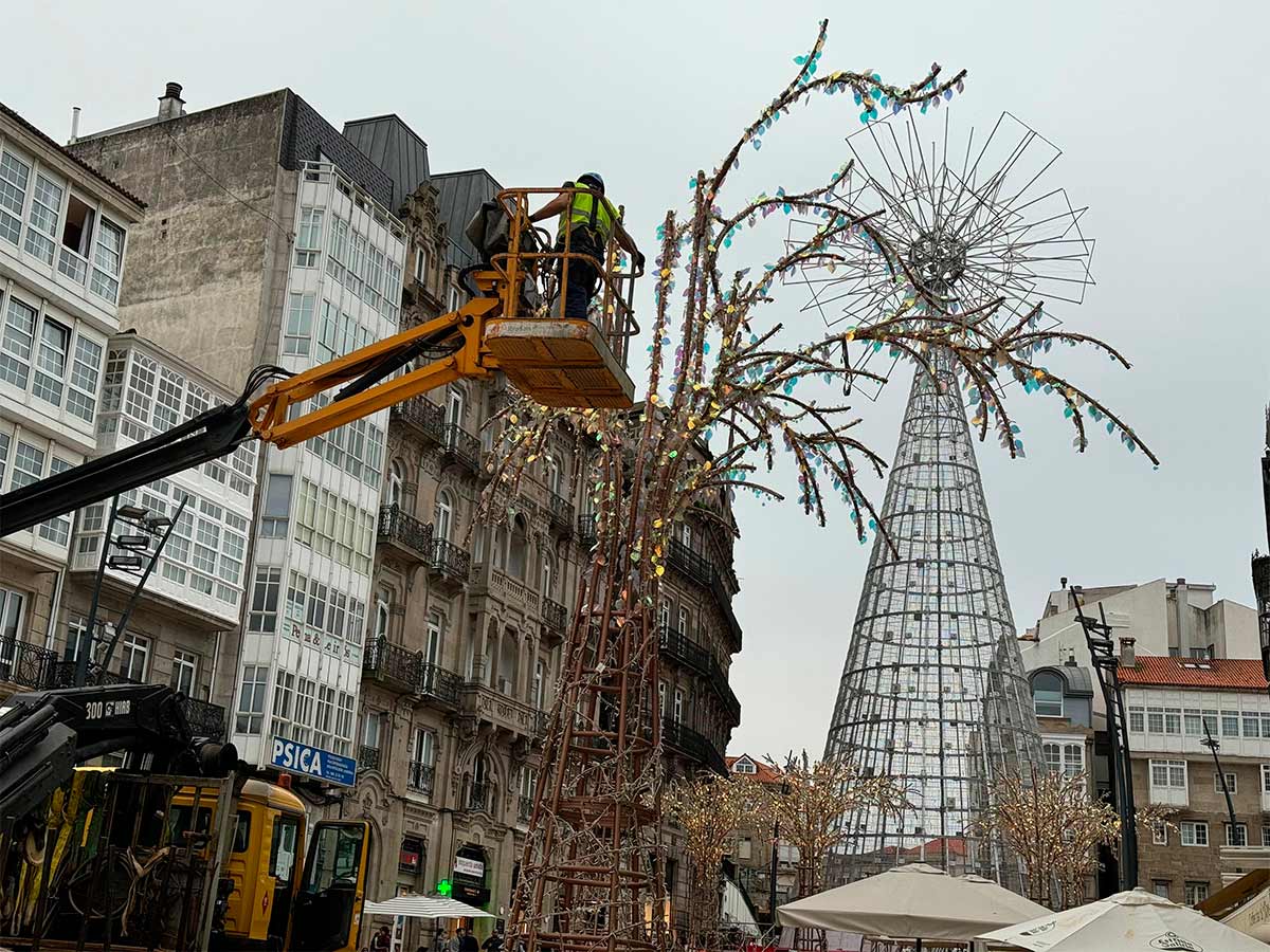 Adornos en rotondas, sets en diferentes puntos de la ciudad y unos trabajos que se intensificarán sobre todo en el centro, el lugar que aglutina buena parte de los atractivos de la Navidad de Vigo. Ahora si, la ciudad olívica ha iniciado su cuenta atrás para activar la que será la Navidad más madrugadora de la historia, encendiéndose antes de Black Friday y mientras algunos aún estamos superando los sustos que nos ha dejado Samaín.