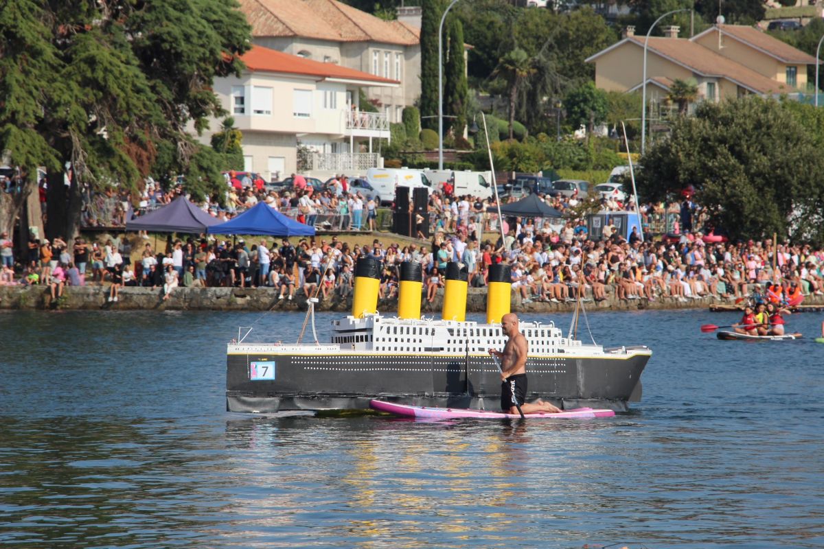 El Concello de Nigrán celebró desde las 17:30 horas de este domingo 24 de agosto por todo lo alto el evento más disparatado del verano: la concentración de artefactos flotantes 'Flota como Poidas'. Un total de 17 embarcaciones con cerca de un centenar de tripulantes y edades totalmente dispares compitieron en el estuario de la Foz do Miñor por premios tan delirantes como el 'Titanic' al primero que se hunda, el artefacto más 'cutre' y más 'currado' o a la tripulación más 'intrépida' y 'simpática'.