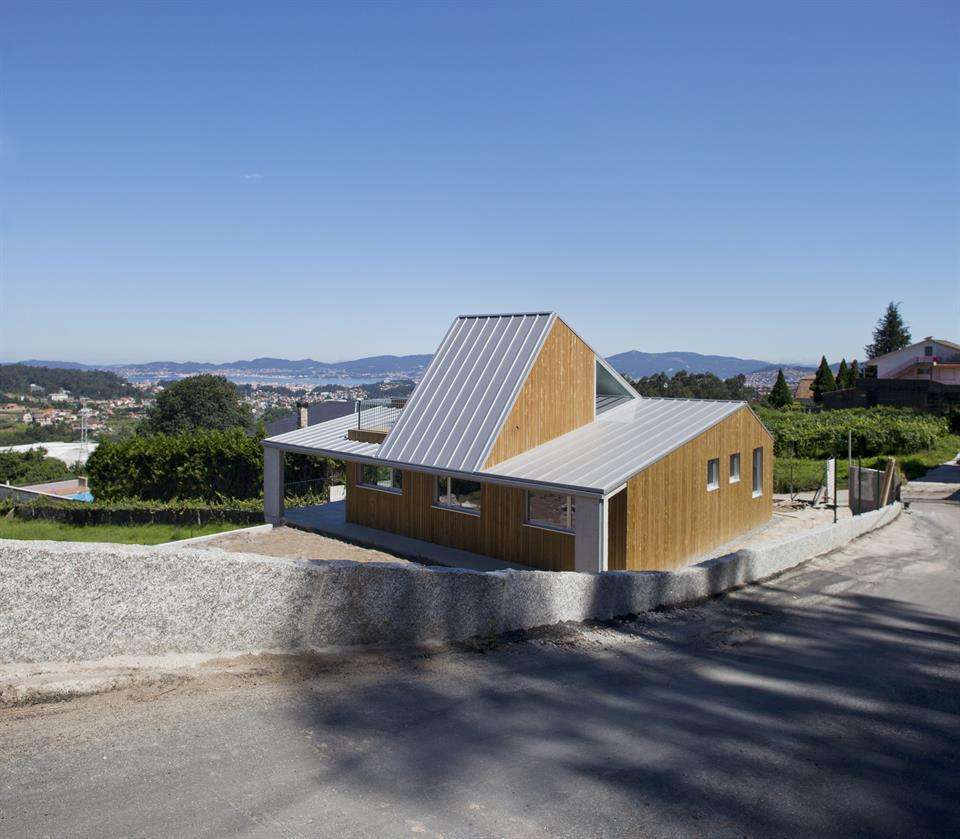 - Propuesta: La vivienda se plantea para una familia joven que, por motivos profesionales, debe estar desplazada largos períodos temporales. Se entiende por tanto como refugio, en el que descansar y recuperarse, los mayores, y disfrutar y divertirse, los más pequeños. Se encuentra en un desnivel de diez metros con unas impresionantes vistas a las Islas Cíes.