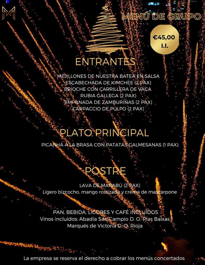 Con un ticket medio de entre 25 y 40 euros, avanza el responsable, la carta de Marabú se completa con una amplia oferta de vinos adaptados a la propuesta gastronómica y una pequeña carta de cócteles de autor, con elaboraciones propias y versiones de los cócteles más tradicionales. De cara a aprovechar el mes de Navidad, Marabú lanzará varios menús de grupo con diferentes precios, entre los 45, 55, 65 y 70 euros, que se podrán degustar de lunes a domingo de 13:00 a 17:00 y de 20:00 a cierre, horario previsto para los meses de Navidad. El 24 de diciembre el menú será de 66 euros (con apertura hasta mediodía) y el día 31 de diciembre en la noche de Fin de Año contarán con un menú de 140 euros.