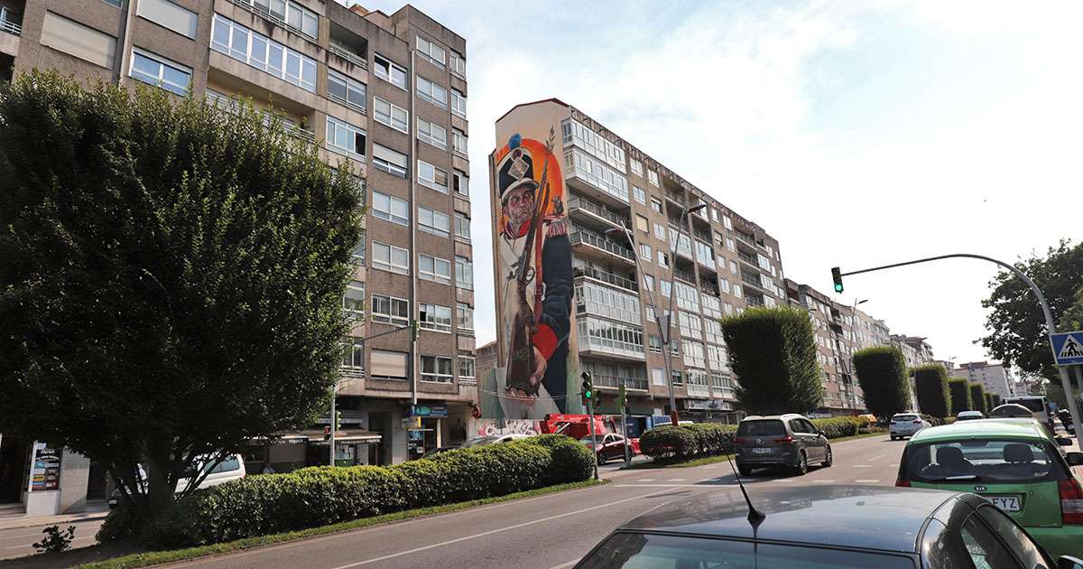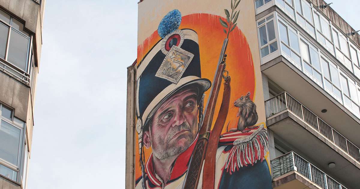 En la avenida de Castelao 29, el artista Diego AS se encargó en los últimos días de dar vida a un mural que busca servir como homenaje a la fiesta histórica de la ciudad, la Reconquista, pero además también muestra un carácter antibelicista que, en tiempos como los actuales, está de plena actualidad. Frente a las armas, flores. Porque nada justifica la guerra, el autor ha decidido representar a un soldado francés que en lugar de una bala tiene una rama de olivo en su fusil sirviendo como una llamada urgente a la paz. Una rama que además de conectar directamente con un mensaje pacifista también lo hace con el espíritu de la propia Vigo, al ser el olivo su emblema. "Busca simbolizar que no tiene sentido realizar reconquistas como la que intentaron los franceses, y más en tiempos como los actuales", explica a Metropolitano.gal el artista en clara referencia al conflicto de Ucrania.