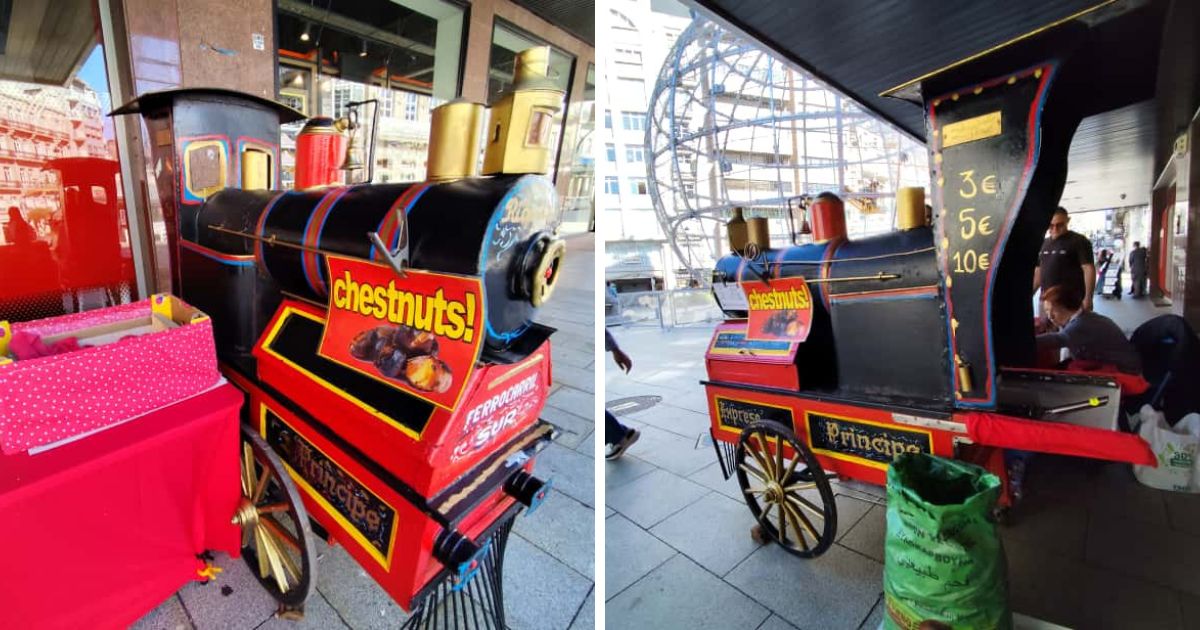 A partir de ahora, y hasta finales del año, por todo Vigo se repartirán el resto de "locomotoras" en las que todo el mundo podrá comprar estos conos de castañas:
