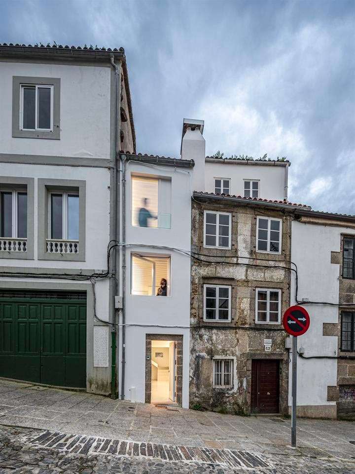 Casa 2M representa, según señalan los arquitectos, la oportunidad de intervenir en, quizá, la parcela más estrecha del Casco Histórico de Santiago. Con tan solo dos metros de ancho medio en el interior (1,90 metros en fachada), y unos 19 metros cuadrados útiles por planta, esta vivienda entre medianeras con vistas hacia una única fachada se distribuye verticalmente (bajo, dos plantas y bajo cubierta) conectando sus espacios visualmente y tomando como hilo conductor, el recorrido de su escalera.