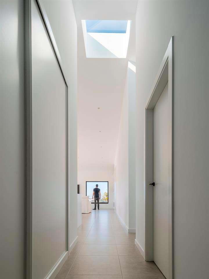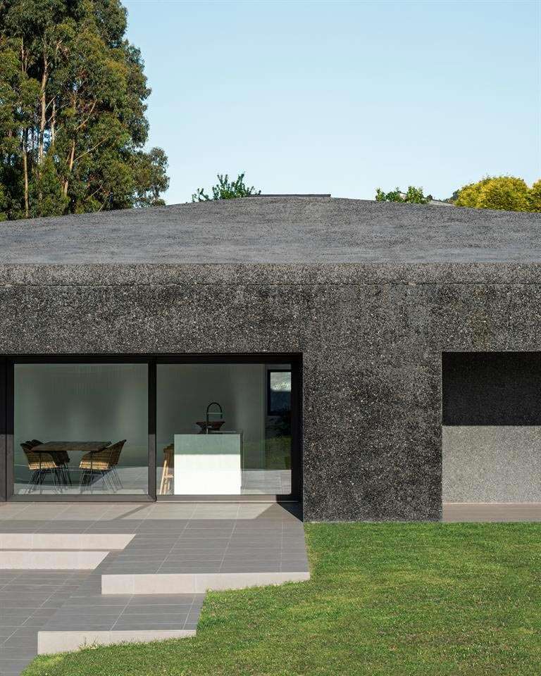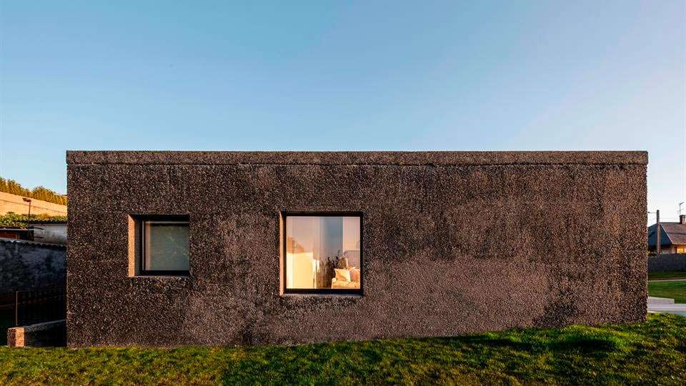 La casa se abre hacia el paisaje urbano de Coruña, pero fundamentalmente al sol y a la naturaleza. Cuenta con un filtro de muros que generan desde la zona de día un espacio previo al exterior y facilita una atmósfera más íntima en el hogar. Se buscó una sensación de protección con un material que se “enfrenta” al exterior y contrasta con el cálido interior.