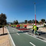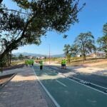 Un nuevo Vigo se abre paso. En estos días de calor, cuando los bañistas ponen rumbo a Samil, a la altura de la Fundación Sales, en la Avenida de Europa, se encuentran con unas vallas que muestran una parte hasta ahora desconocida de la ciudad. Tras esa barrera visual, se encuentra la ampliación del barrio de Navia, que contará como principales novedades con la construcción de nueva vivienda en la ciudad olívica, carril bici, zonas verdes y de un nuevo parque infantil. Este miércoles, el presidente de la Xunta, Alfonso Rueda, y la conselleira de Vivenda e Planificación de Infraestruturas, María Martínez Allegue, realizaron una visita a las obras de urbanización del primero de los tres polígonos que supondrán el crecimiento de esta zona que sigue cogiendo forma en esta parte de la ciudad olívica.