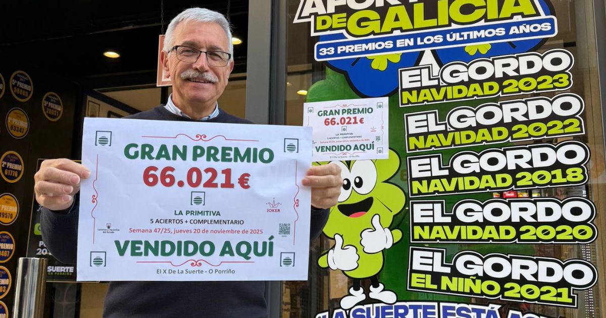 La alegría se ha desatado en O Porriño tras conocer la noticia de un premio de más de 60.000 euros en el sorteo de La Primitiva de este jueves. Una vez más, la administración más afortunada de la localidad ha sido la responsable de repartir esta suerte. Ya es un clásico que la fortuna vaya de la mano de O Porriño en este tipo de sorteos, y más concretamente en la administración de El X de la Suerte.