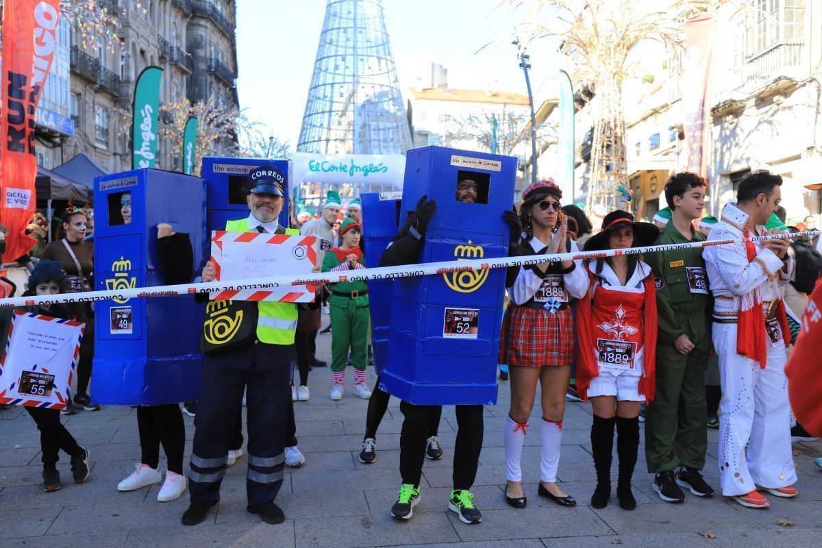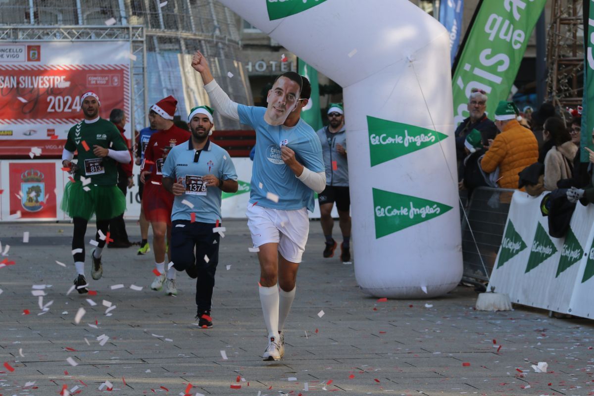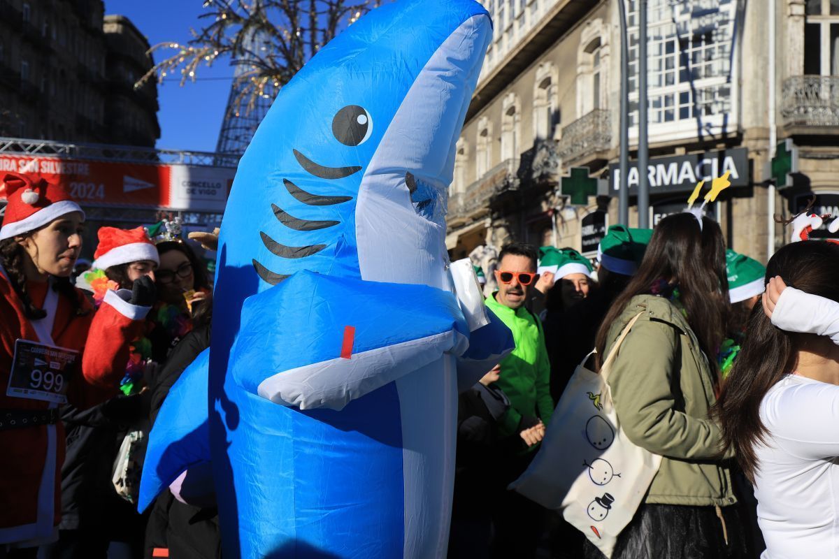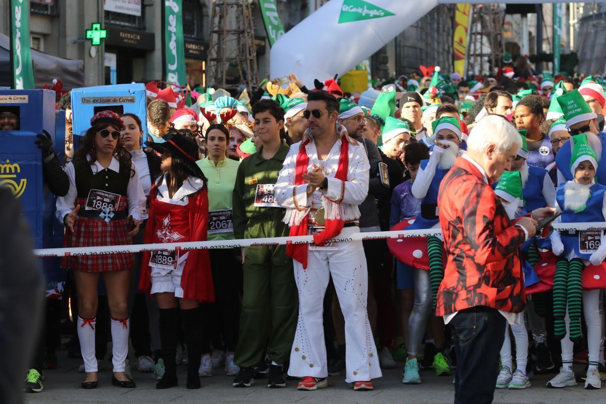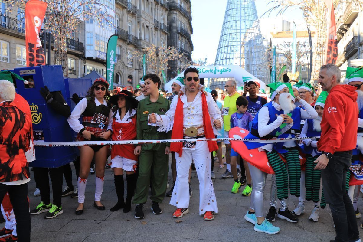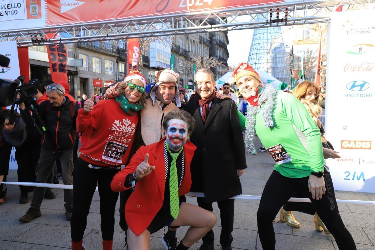 No faltó Elvis Presley, que se colocó de los primeros en la línea de salida. Tampoco se perdieron la cita las letras de VIGO ni el cartero real. Fueron muchos los participantes de la prueba que se disfrazaron para esta última carrera del año. Papá y Mamás Noel, reyes, langostas, Power Rangers, tiburones, médicos, elfos, sacerdotes, robots, futbolistas e incluso uno caracterizado de Iago Aspas participaron en esta San Silvestre. Todos ellos cruzaron la meta bajo la atenta mirada del alcalde de la ciudad, que también se fotografío con algunos de ellos.