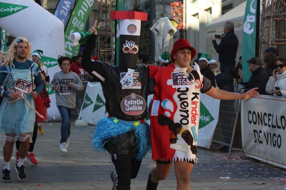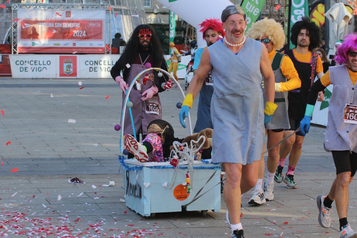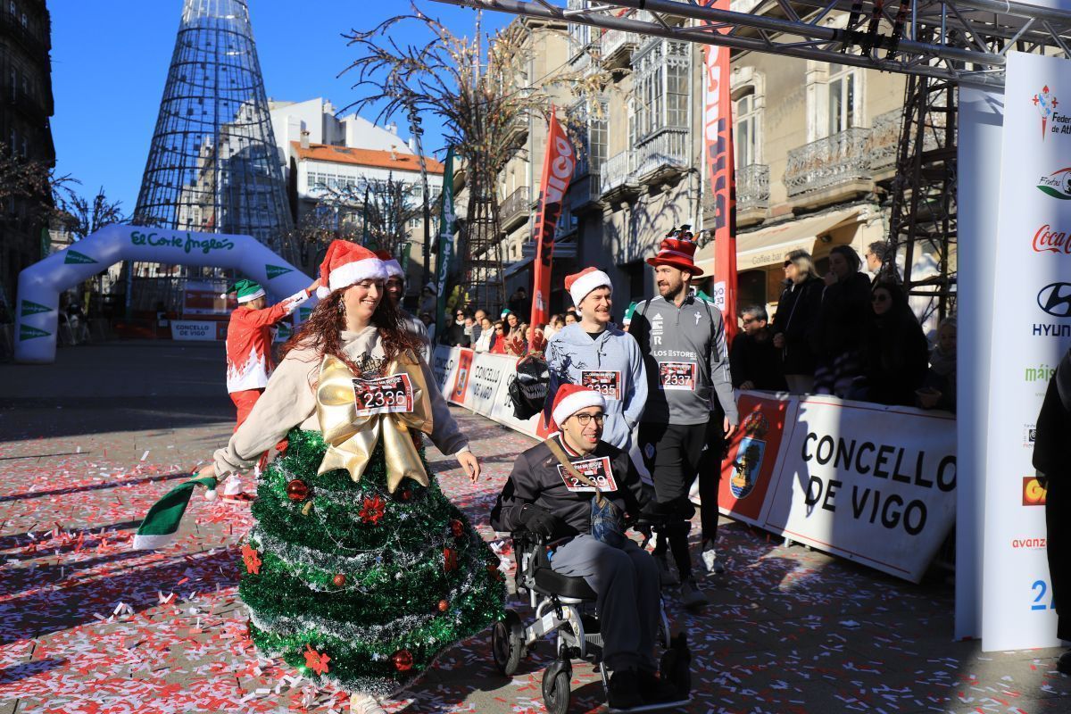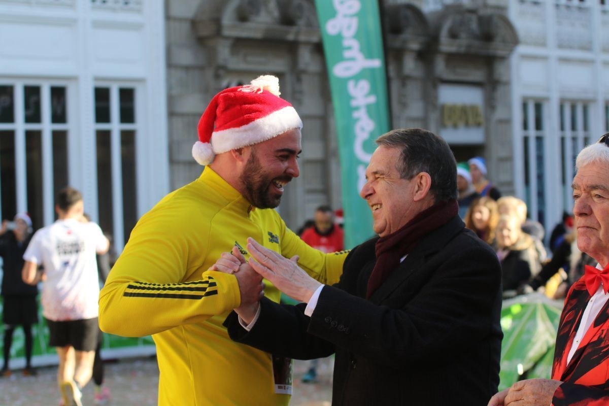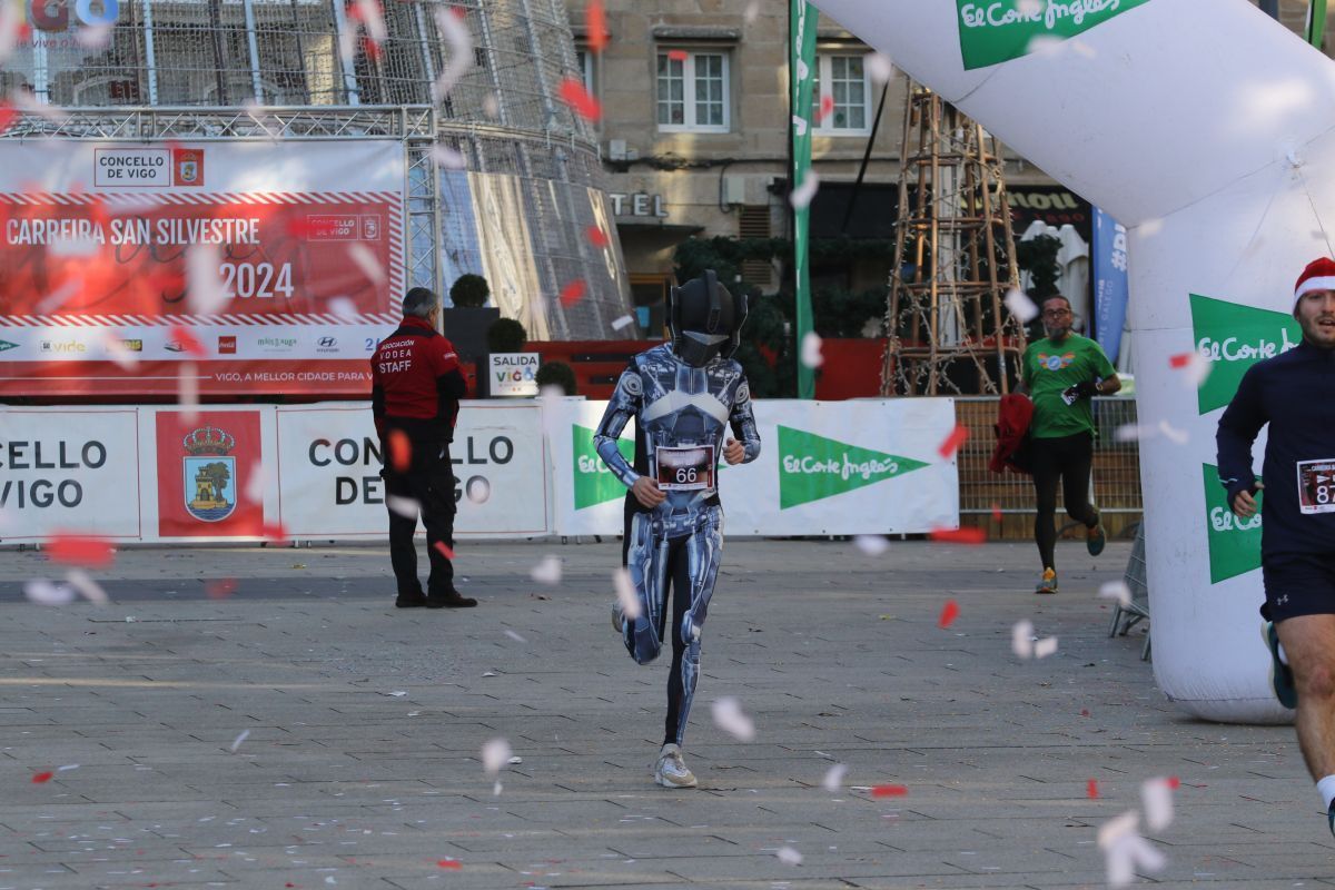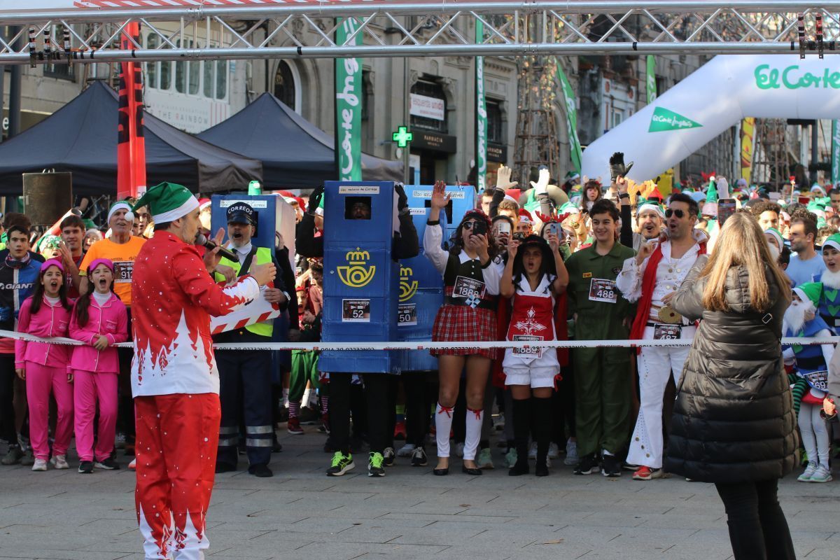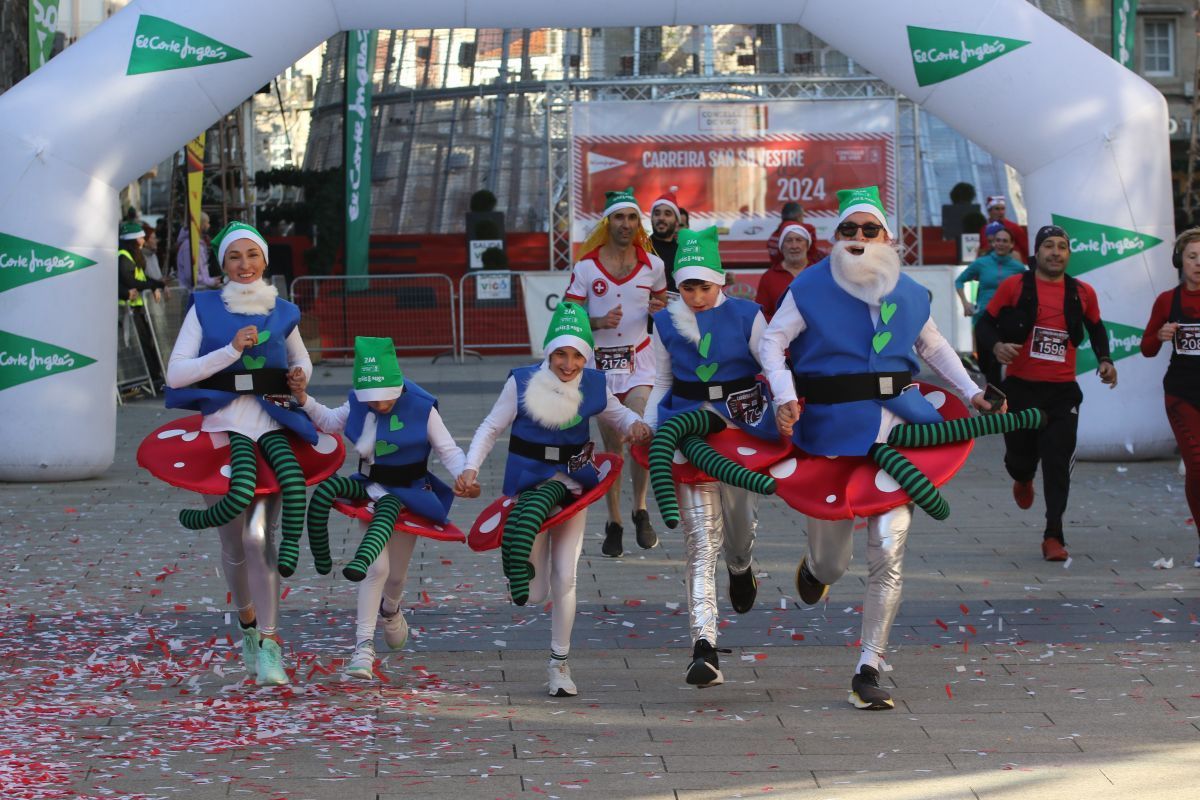 No faltó Elvis Presley, que se colocó de los primeros en la línea de salida. Tampoco se perdieron la cita las letras de VIGO ni el cartero real. Fueron muchos los participantes de la prueba que se disfrazaron para esta última carrera del año. Papá y Mamás Noel, reyes, langostas, Power Rangers, tiburones, médicos, elfos, sacerdotes, robots, futbolistas e incluso uno caracterizado de Iago Aspas participaron en esta San Silvestre. Todos ellos cruzaron la meta bajo la atenta mirada del alcalde de la ciudad, que también se fotografío con algunos de ellos.