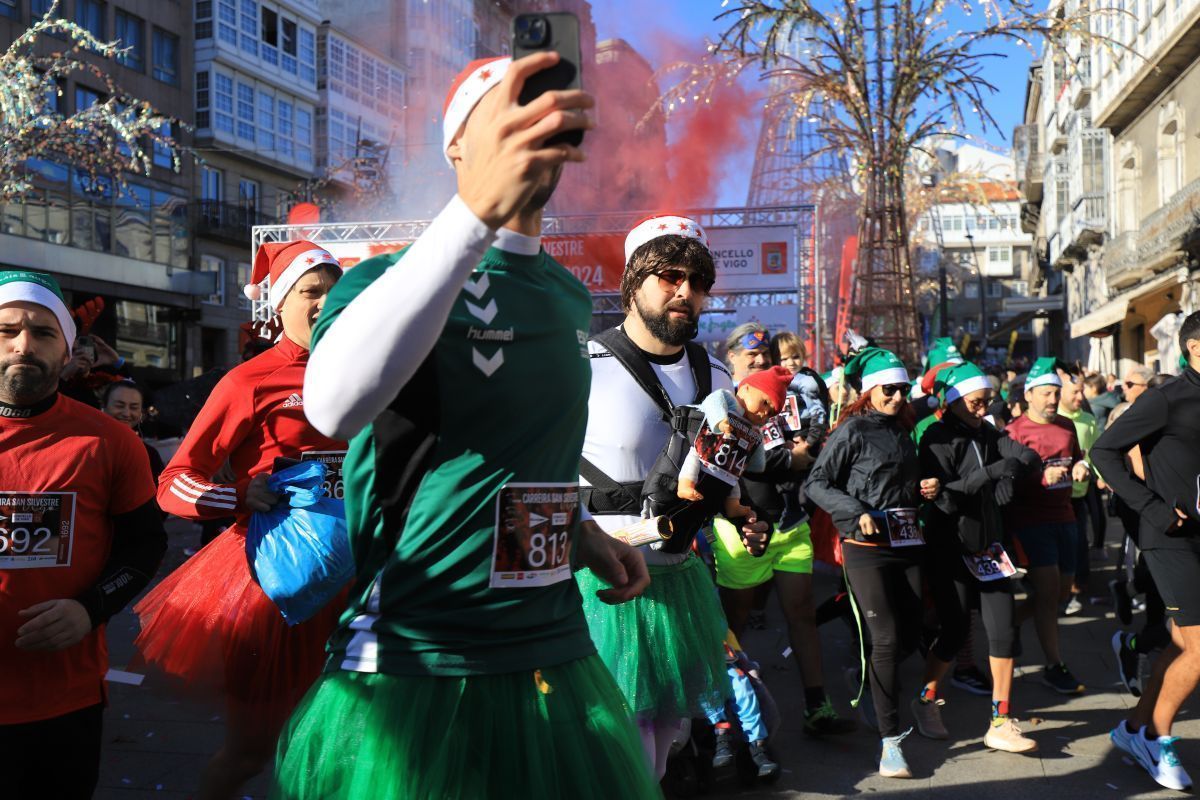 Vigo se despidió del año a la carrera. Miles de personas decidieron participar en la San Silvestre de la ciudad olívica en una jornada en la que acompañó el buen tiempo. Tras el mensaje de Abel Caballero para los miles de participantes de la prueba y la cuenta atrás para su inicio, unos más rápidos que otros tomaron la salida para completar los 4,5 kilómetros del recorrido.