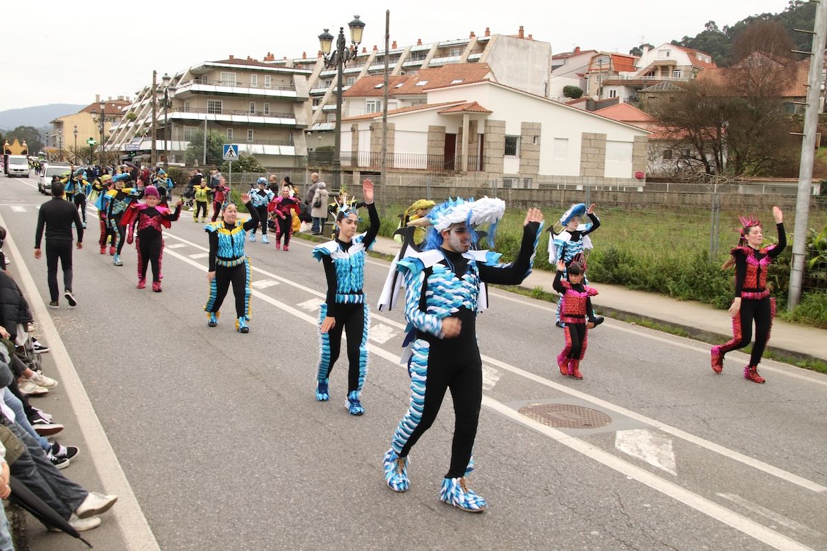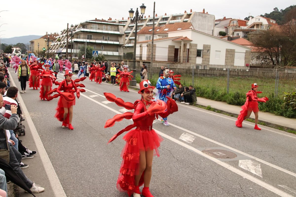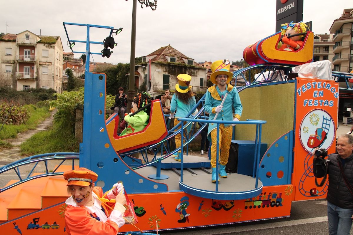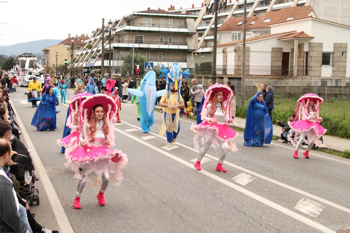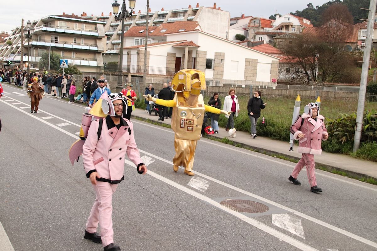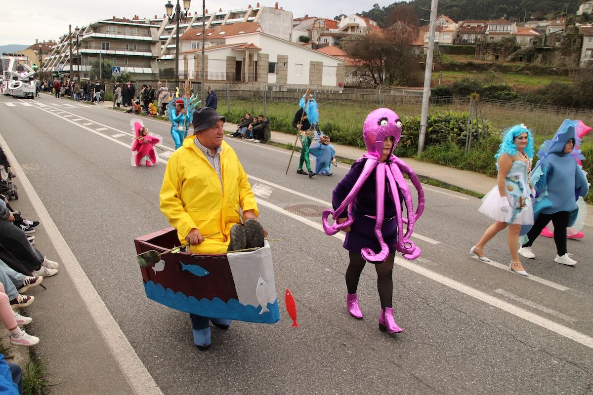 Un desfile por el que el Concello reparte 6.500 euros en premios y ayudas por participación entre las comparsas que desfilaron por las calles de este municipio de O Val Miñor. Tras el desfile, llegó el turno, también de forma adelantada, de otra de las citas habituales del Entroido: el Entierro de la Sardina, que finalizó en el arenal de la Ribeira.
