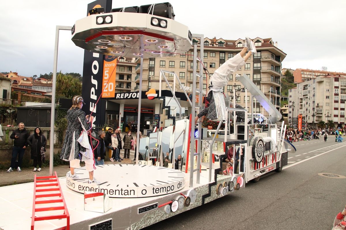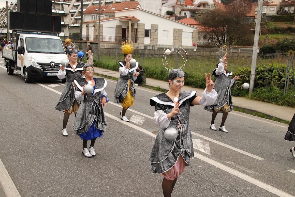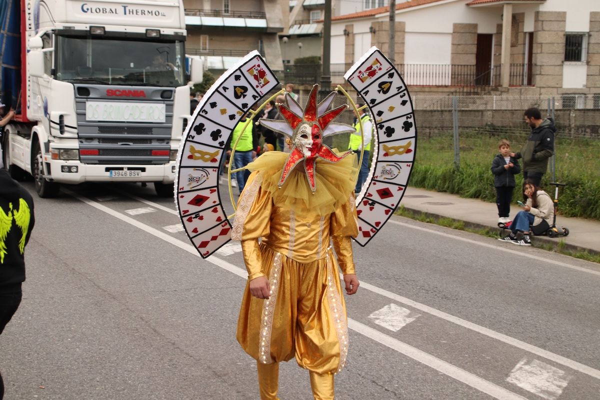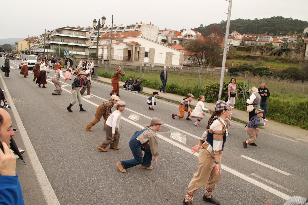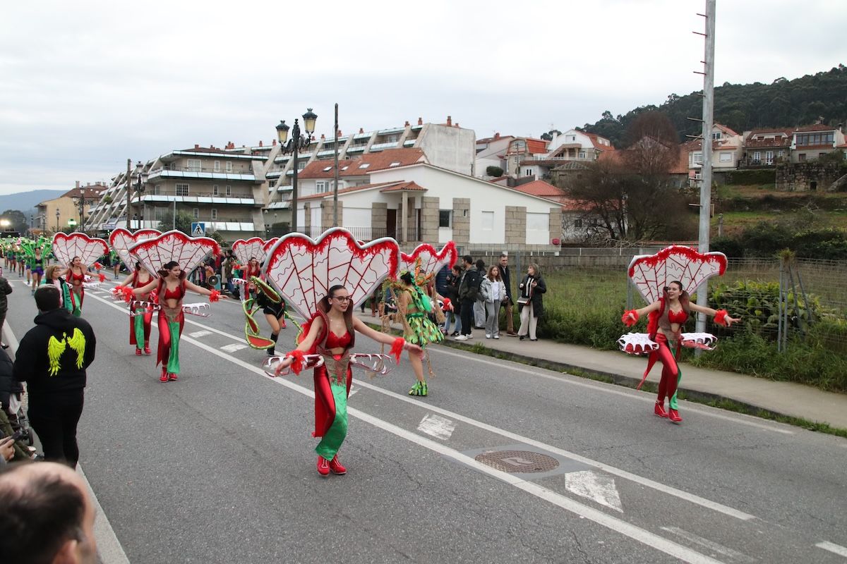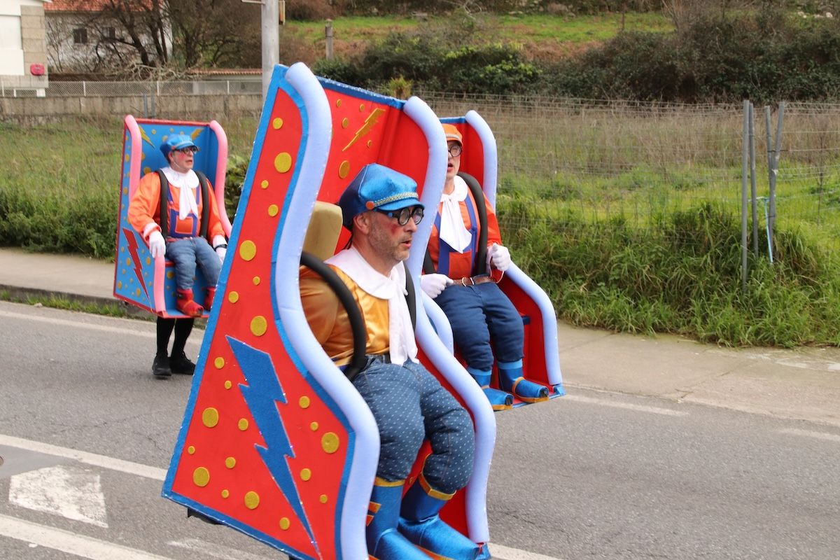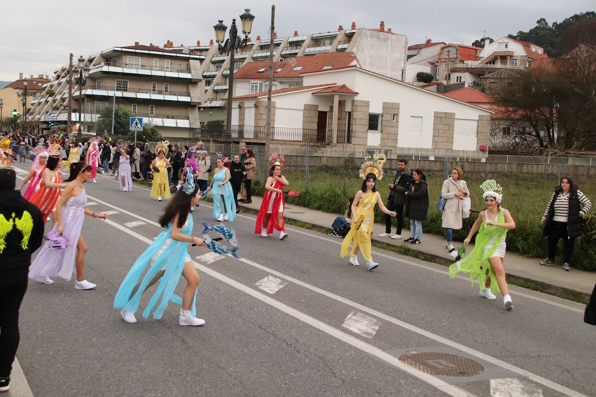 Un desfile por el que el Concello reparte 6.500 euros en premios y ayudas por participación entre las comparsas que desfilaron por las calles de este municipio de O Val Miñor. Tras el desfile, llegó el turno, también de forma adelantada, de otra de las citas habituales del Entroido: el Entierro de la Sardina, que finalizó en el arenal de la Ribeira.