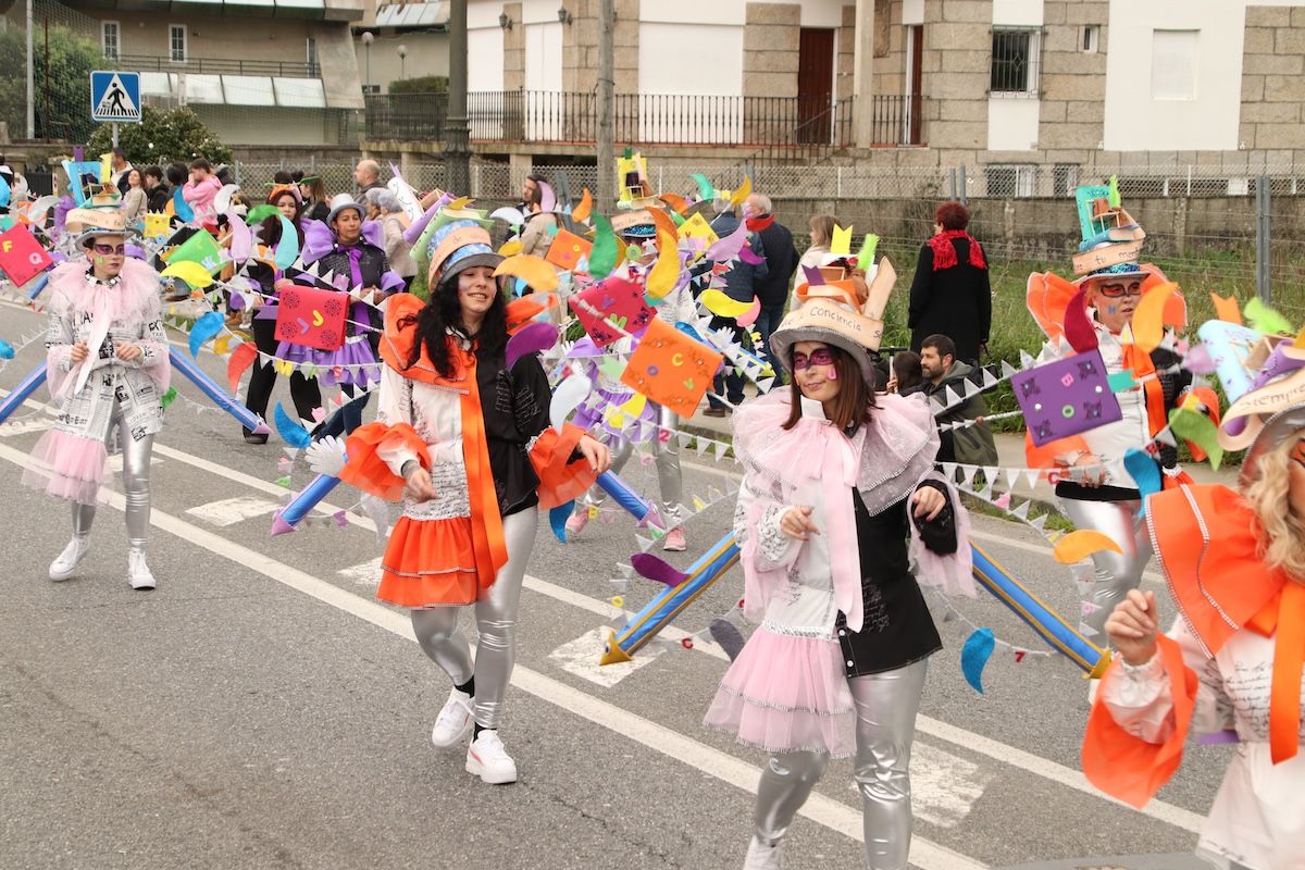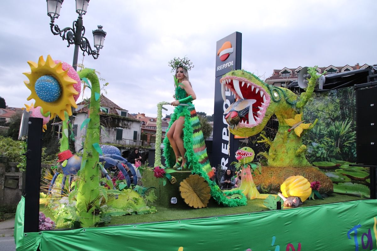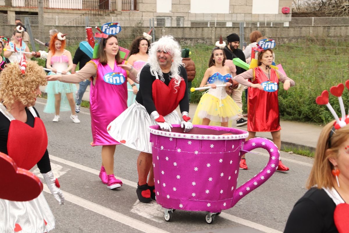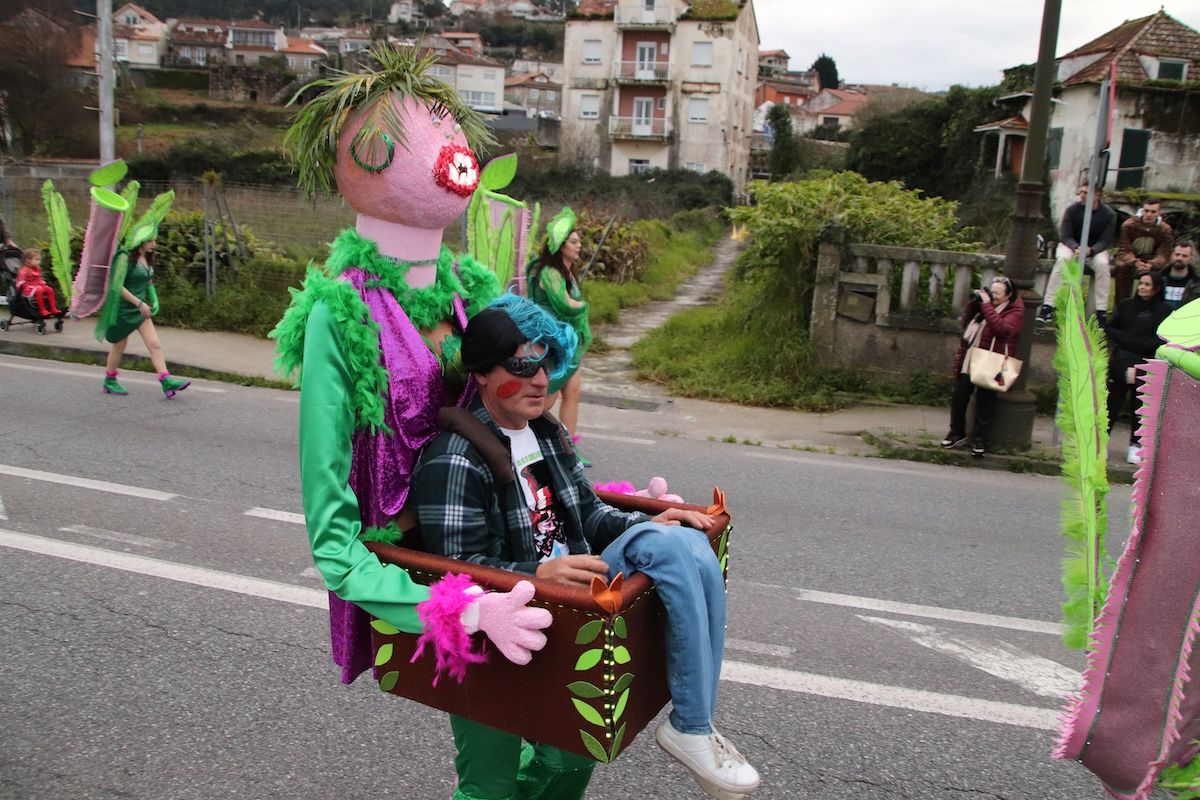 Las calles de Baiona se volvieron a llenar de color con el tradicional desfile de Entroido. Fueron muchas y diversas las propuestas que pudieron ver los vecinos y los visitantes que este sábado se desplazaron al municipio para disfrutar de esta jornada festiva. Superhéroes, personajes del Monopoly, estrellas del cine, atracciones, marineros y elementos del mar, tarotistas o personajes de Alicia en el País de las Maravillas fueron algunas de las propuestas de los diferentes grupos y comparsas que desfilaron por las calles de Baiona.