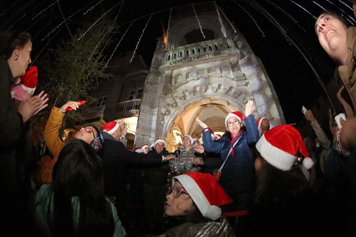 O Porriño ya respira Navidad. La plaza Arquitecto Antonio Palacios fue el epicentro de una tarde cargada de magia y buenos deseos, marcada por el encendido de las luces navideñas que iluminan las calles del municipio. El acto, que congregó a vecinos y visitantes, comenzó a las 17:30 horas con las actuaciones del grupo "Folk da Escola de Música do Porriño" y del grupo de gaitas de la Asociación Cultural Os Penediños de Atios, llenando el ambiente de tradición y alegría.