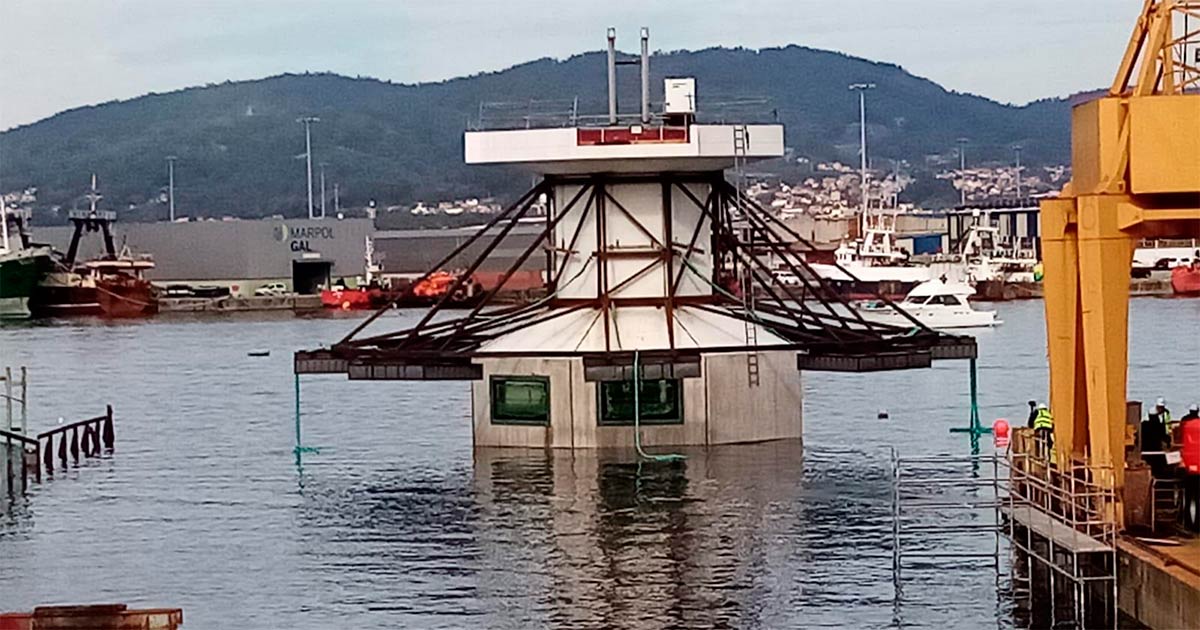 Una vez complete su singladura hacia Bouzas, el visor será posicionado y lastrado gradualmente con agua de mar en sus tanques interiores. Se trata de un proceso lento y paulatino para asegurar que se alcanza la ubicación precisa, ya que el margen de error para su posicionamiento final es de muy pocos centímetros.