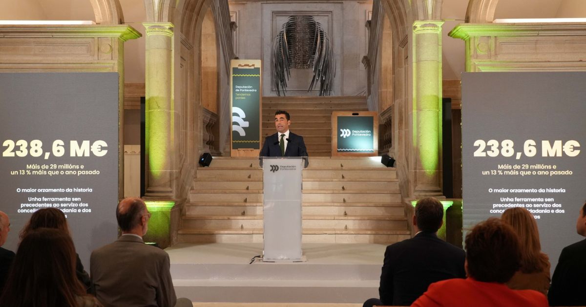 El presidente de la Diputación de Pontevedra, Luis López, presentó este martes el contenido del Presupuesto del organismo provincial para el próximo año 2026, que crece en un 13,6 % con una subida de 29 millones de euros con respeto a las cuentas del presente ejercicio hasta situarse en los 238,6 millones de euros, (243 en la versión consolidada).