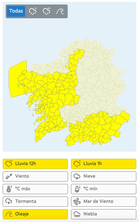 Vigo y su área, así como el resto de la provincia de Pontevedra, están en alerta amarilla desde este viernes a las 18:00 horas por fuertes lluvias y grandes acumulados de agua. Según Meteogalicia y la Aemet, se prevé que durante 12 horas, tanto en la ciudad olívica como en el resto de municipios de la provincia de Pontevedra se prevén hasta 40 litros por metro cuadrado.