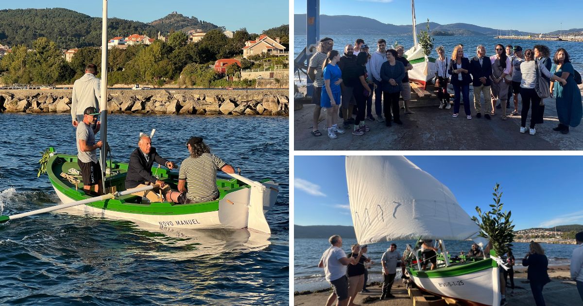 Los alumnos del Obradorio de Emprego de Carpintería de Ribeira do Concello de Redondela fueron los encargados de construir esta réplica del Manuel, que este jueves surcó por primera vez la ría de Vigo. Antes se encargaron de restaurar la embarcación original, que preside la entrada del Museo de Meirande. La directora de los talleres, Imelda Barrio, explicó que el “Novo Manuel” superó todas las inspecciones técnicas de Capitanía Marítima y ya está listo para navegar. Y este jueves llegó el turno de botarlo al mar frente a vecinos, autoridades y alumnos del taller. También fue la primera vez que se subieron a él diferentes personas. Entre ellos se encontraba Faustino Otero, heredero del bote que mandó construir su abuelo hace casi un siglo. Se mostró "moi feliz" al ver al "Novo Manuel" en el mar e incluso se atrevió a coger los remos para surcar durante un buen rato junto a miembros de la Asociación Lagoa dos Bébedos, impulsora del proyecto, por la ría de Vigo.