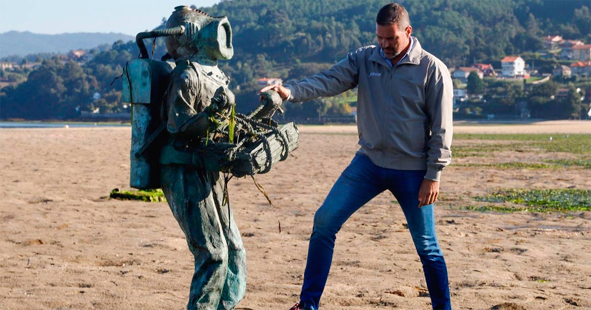 La ensenada de San Simón vuelve a lucir una de sus estampas más icónicas. El conselleiro de Cultura, Lingua e Xuventude, José López Campos, se acercó este miércoles al conjunto escultórico del Capitán Nemo, próximo a la isla perteneciente a Redondela, para comprobar el resultado de la restauración al que fue sometido con una inversión de 14.500 euros por parte del Gobierno gallego. Una muestra, apuntó, "de nuestra implicación con las demandas de las administraciones locales para la conversación de los puntos de interés cultural en sus concellos".