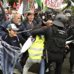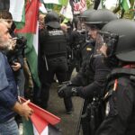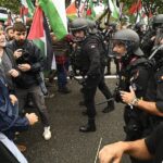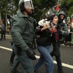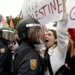 La presencia de cientos y cientos de personas en el Alto de San Cosme obligó a la organización de La Vuelta a suspender el final previsto en el Castro de Herville, en Mos. La decisión de la prueba que dirige Javier Guillén era adelantar la meta 8 kilómetros, dejando un cierre de etapa confuso para los corredores que se encontraban en ese momento luchando por llegar primero a línea de meta. El triunfador fue el colombiano Egan Bernal, pero en San Cosme la consigna era otra: "Hoy ha ganado Palestina", señalaban algunas de las personas que habían participado en la concentración, una acción reivindicativa en la que hubo momentos de mucha tensión con el amplio dispositivo de seguridad que conformaba la Guardia Civil y la Policía Nacional.