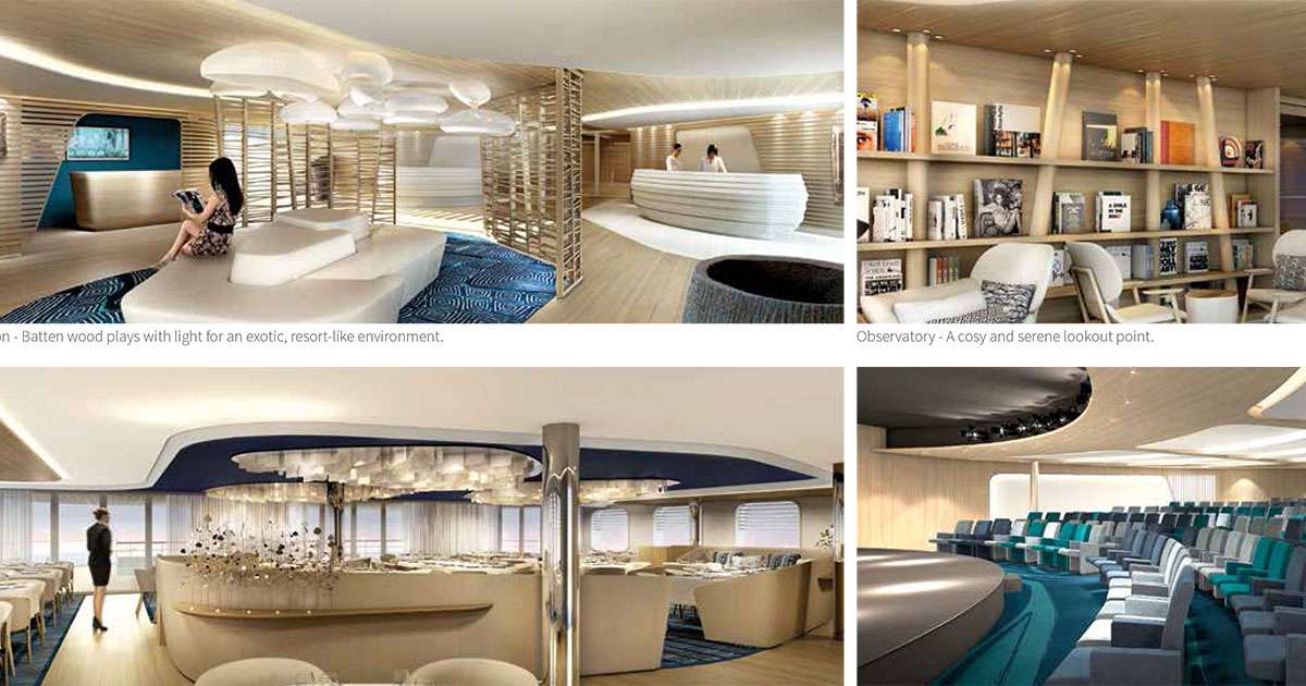 Se trata de un crucero de pequeño tamaño que busca ofrecer experiencias “íntimas con la posibilidad de explorar los destinos con un lujoso servicio”. Así, el camarote de mayor tamaño nos ofrece hasta 45 metros cuadrados con un balcón privado de 30 metros cuadrados.