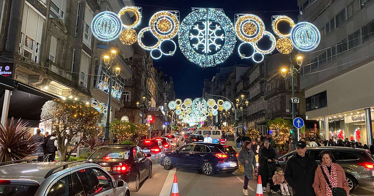 La peor situación se vivió ya a media tarde en la AP-9, con todas las opciones de acceso bloqueadas de vehículos. Las luces rojos de los frenos se han convertido ya en una imagen más de la Navidad viguesa, con cientos de coches esperando para poder entrar desde la Autopista del Atlántico. La congestión se concentró entre la raqueta de Teis y el Vialia, con colas kilométricas. Estas colas derivaron además en tráfico muy lento y congestión en los túneles de Beiramar y la Paellera. En la Avenida de Madrid las retenciones comenzaron algo más tarde, en torno a las 19:00 horas, y la actuación policial en Gran Vía permitió desatascar algo el tráfico. En cualquier caso, las retenciones fueron también muy significativas.