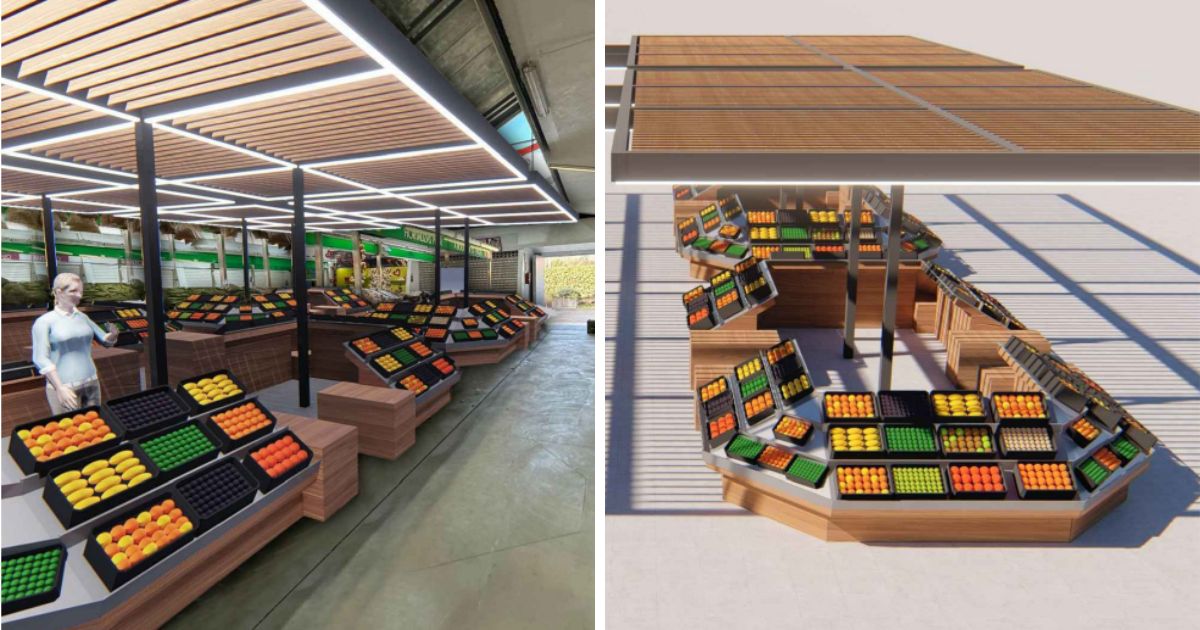 Por otra parte, se creará una estructura metálica independiente a los puestos que proporcionarán un nuevo suelo a la zona de venta tanto de pescadería como de frutería y un nuevo techo, con un sistema de iluminación, que generará sombra evitando así los rayos del sol que entran por los laterales.
