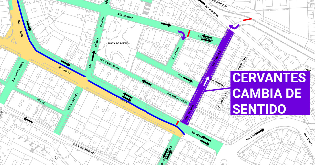 - En la calle Rosalía de Castro, entre Pontevedra y Colón, se establece doble sentido de circulación para acceder al aparcamiento y garajes de Colón.