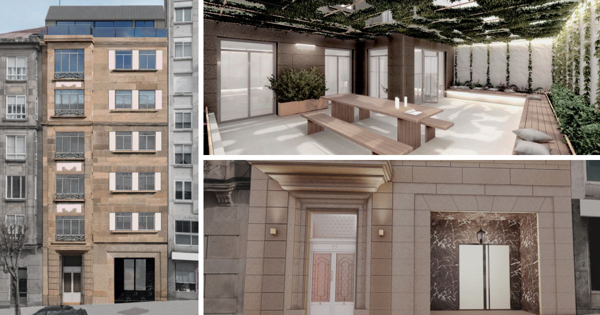 El edificio tuvo que ser rehabilitado íntegramente, pese a que conserva la fachada con su diseño original en piedra. Además, el inmueble ha crecido con una nueva cubierta y un bajocubierta. En el interior, los actuales pisos se reparten en superficies de entre 130 y 156 metros cuadrados, que se distribuyen en salones de cocina abierta y entre 3 y 4 dormitorios por vivienda. Además, algunos de los pisos incluyen una terraza interior.