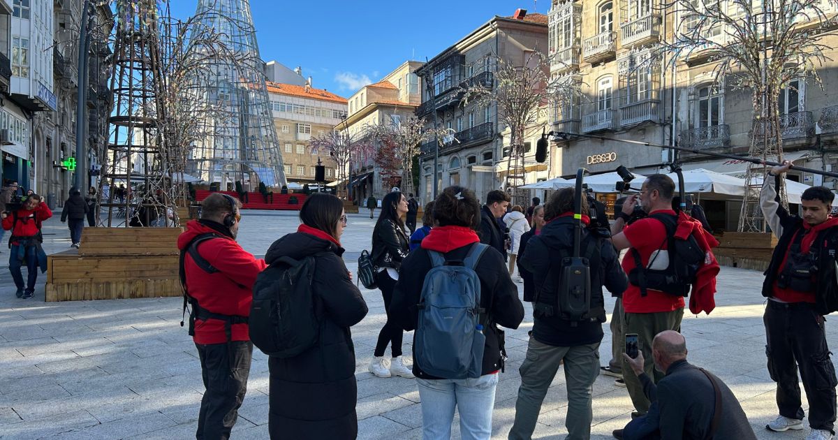 Un amplio despliegue de cámaras, micrófonos y curiosos ha tomado el centro de Vigo este martes. La televisión nacional vuelve a fijarse en la ciudad como plató de grabación, pero esta vez no para centrarse en su decoración de Navidad -pese a que esta sí ha sido el telón de fondo-. La Porta do Sol se ha convertido en escenario de uno de los concursos más populares de las tardes televisivas.