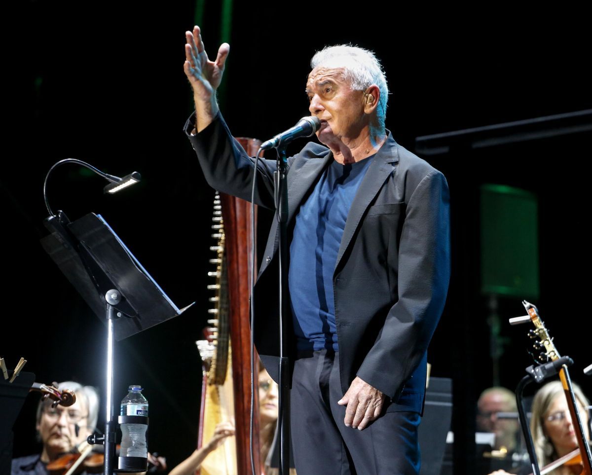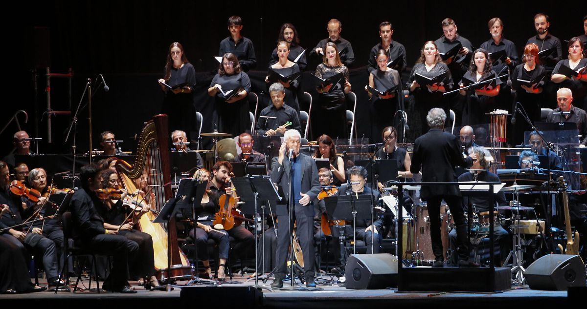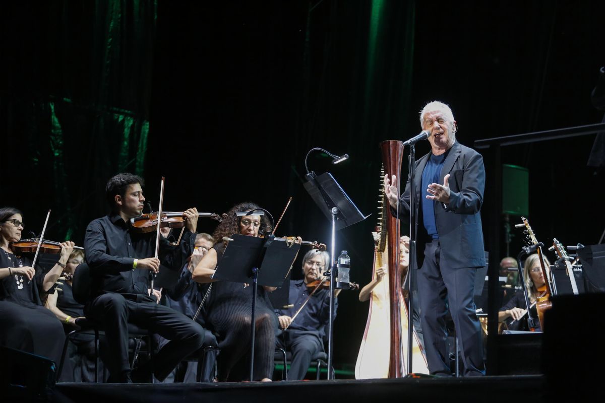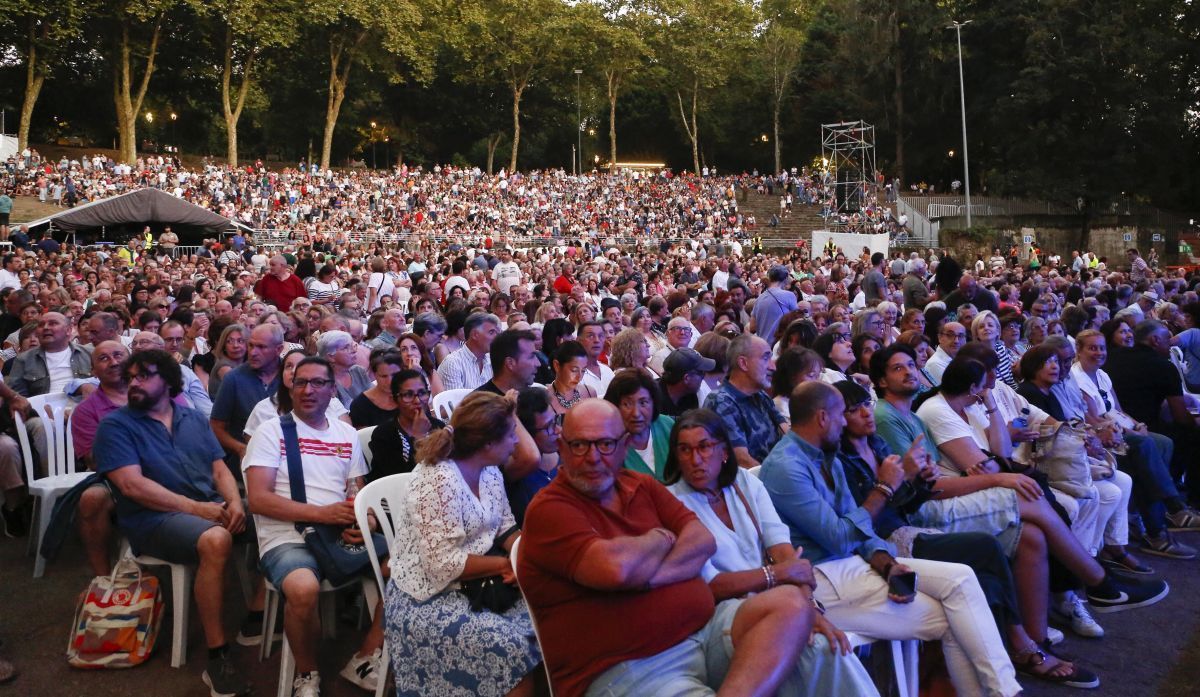 Pocas sorpresas en el inicio del concierto de Víctor Manuel en Vigo. "Asturias", un tema mítico de un cantante que siempre hizo gala de sus orígenes. Esas raíces que forjaron una excelente trayectoria musical se confirmaron con lo vivido en la noche de este 14 de agosto, víspera del puente más importante de este mes, en el Auditorio de Castrelos. El de Mieres está en forma. Su principal instrumento, esa espectacular voz que le ha convertido en toda una leyenda de la música nacional, se fusionó a la perfección en un recital en formato sinfónico cuya Real Filharmonía de Galicia estuvo dirigida por Joan Albert Amargós y en que se pudo degustar con sutileza y fervor cada verso de las icónicas letras de los éxitos que forman parte de la banda sonora de la vida de las miles de personas que esta noche acudieron al auditorio al aire libre vigués.