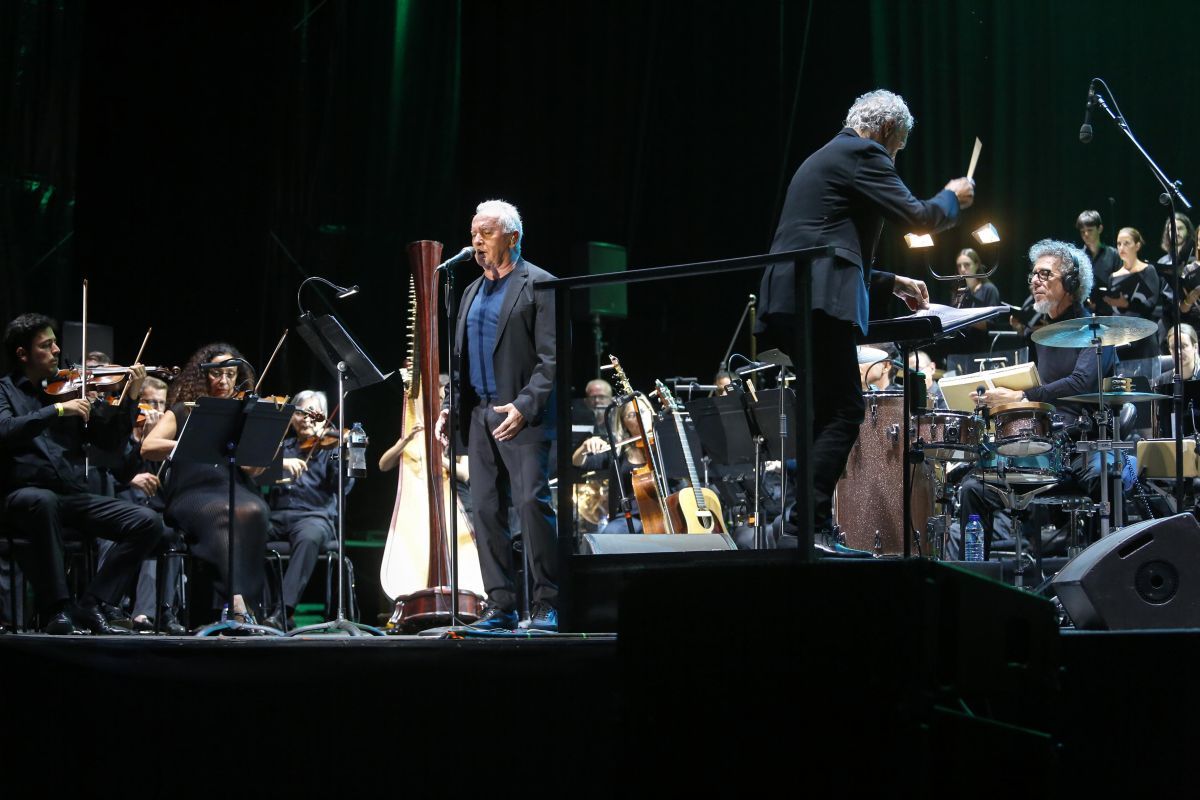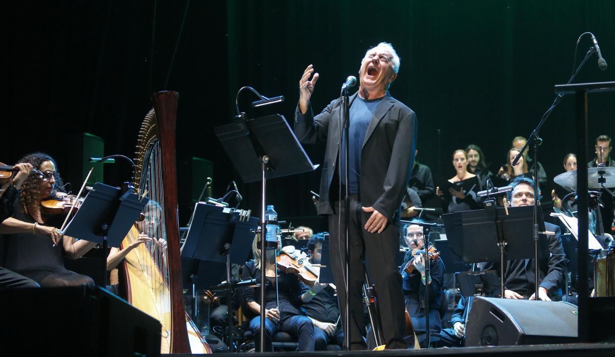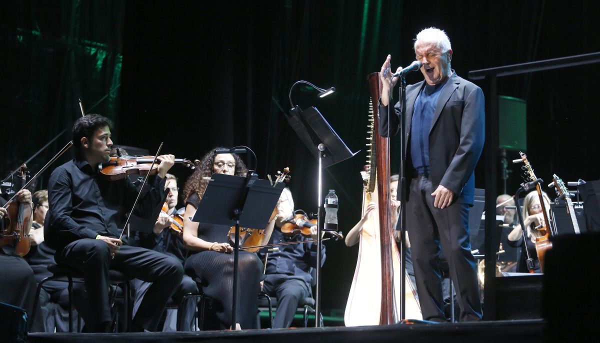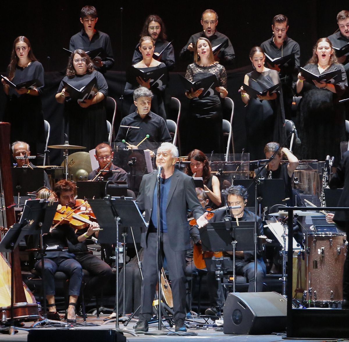 Pocas sorpresas en el inicio del concierto de Víctor Manuel en Vigo. "Asturias", un tema mítico de un cantante que siempre hizo gala de sus orígenes. Esas raíces que forjaron una excelente trayectoria musical se confirmaron con lo vivido en la noche de este 14 de agosto, víspera del puente más importante de este mes, en el Auditorio de Castrelos. El de Mieres está en forma. Su principal instrumento, esa espectacular voz que le ha convertido en toda una leyenda de la música nacional, se fusionó a la perfección en un recital en formato sinfónico cuya Real Filharmonía de Galicia estuvo dirigida por Joan Albert Amargós y en que se pudo degustar con sutileza y fervor cada verso de las icónicas letras de los éxitos que forman parte de la banda sonora de la vida de las miles de personas que esta noche acudieron al auditorio al aire libre vigués.