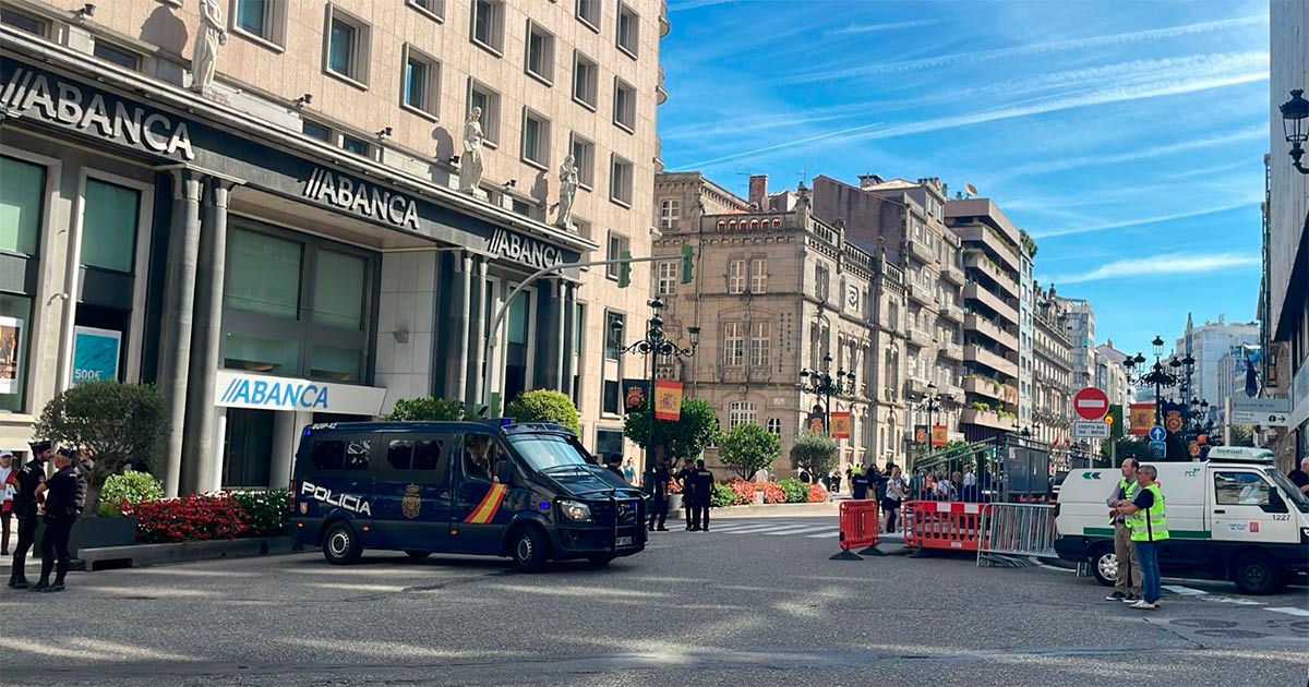 Una de las principales acciones tomadas desde Praza do Rei son las restricciones de acceso a García Barbón, donde está montada la grada para las personas que asistan a este acto central que la Policía Nacional celebra en pleno corazón de la urbe gallega. Desde las 08:00 horas, está totalmente prohibido el acceso a esta calle desde Colón hasta la confluencia con la República Argentina, al igual que queda restringido el acceso a García Barbón desde la calle Isabel II.