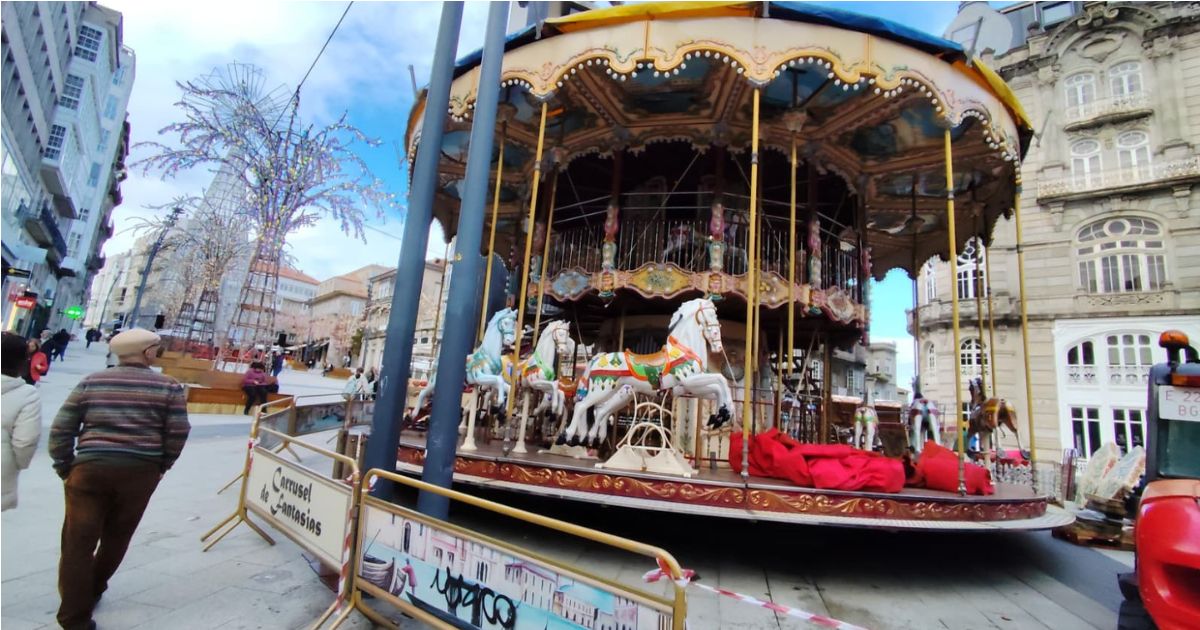 Así, cada año se asienta en el centro de Vigo un idílico carrusel clásico con una estética de época. Esta atracción cuenta con una plataforma de dos alturas, 22 caballitos, 2 carrozas, 6 bancos de madera, 2 columpios y dos ollas giratorias. Todo un espectáculo para los más pequeños, y para cualquiera que desee vivir la Navidad de Vigo desde una nueva perspectiva.