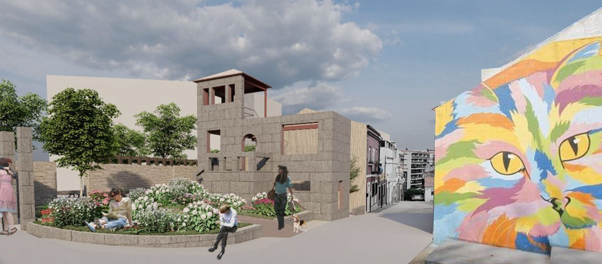 La nueva placita que se creará contará con un estanque y zonas de chorros de agua, que pretenden dialogar así con la memoria del lugar y la propia tradición gallega de vida comunitaria alrededor de los molinos. Se propone así que el agua cree un lugar de desconexión y relajación, pero también una zona para refrescarse en los meses de verano.