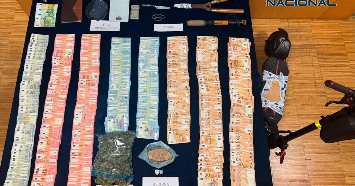 El operativo policial 'explotó' este jueves, cuando se llevaron a cabo las detenciones y el registro simultáneo de los domicilios de los principales sospechosos, en Ramón Nieto y Plaza de Portugal. En dichos registros se intervinieron 100 gramos de heroína, 6 gramos de cocaína, 350 gramos de marihuana, más de 30.000 euros en efectivo, un puño americano, cuchillos y otras armas blancas, además de una báscula de precisión y otros útiles para la manipulación de la droga.