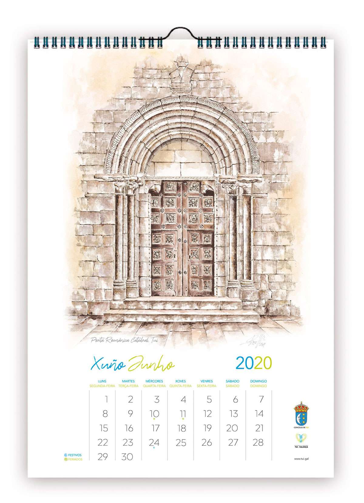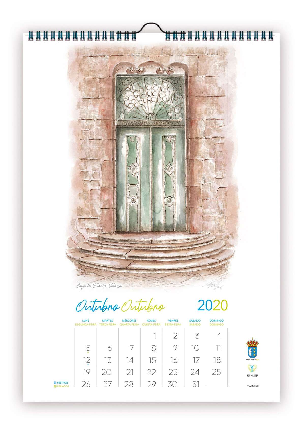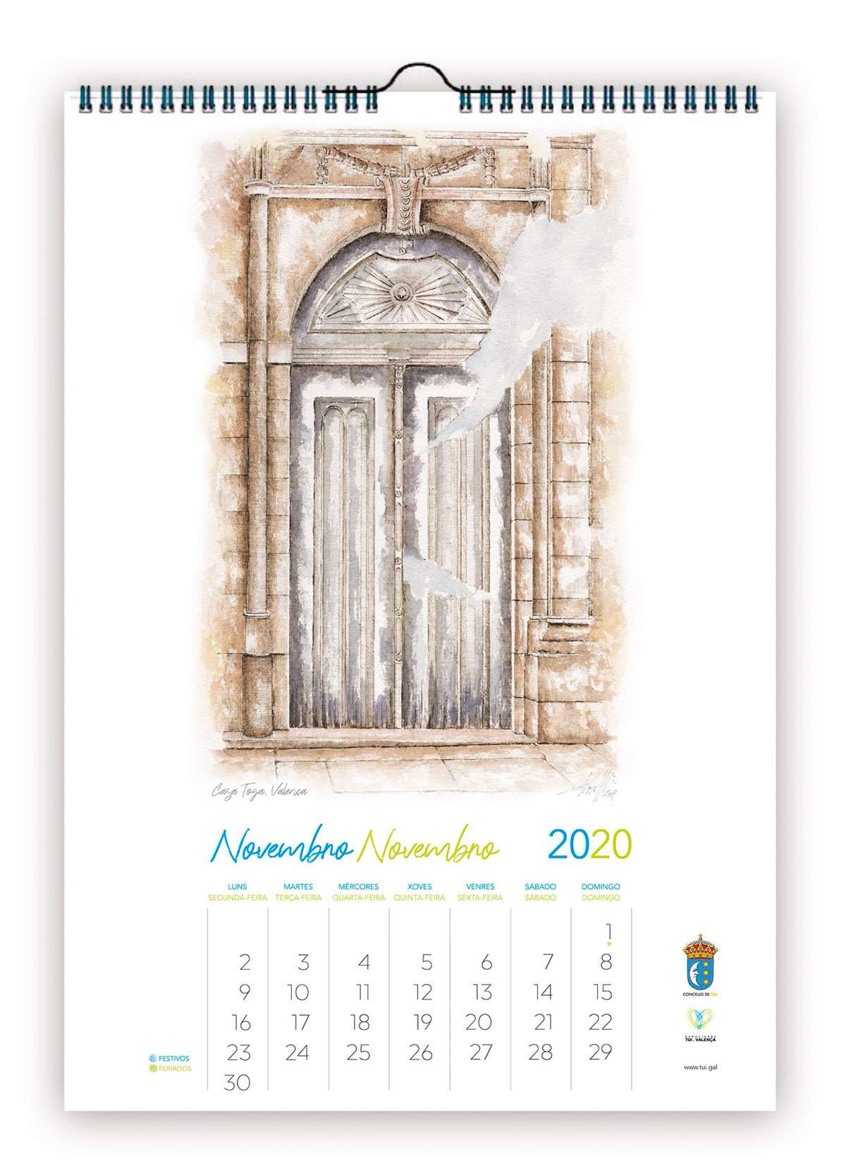 “2020. Abrindo portas…” é o título do calendario de 2020 que vén de editar o Concello de Tui. Está ilustrado con pinturas de portas da Eurocidade Tui-Valença realizadas pola artista tudense Rosa María Vila. Así na portada figura o Pórtico da Catedral de Tui e a Porta da Coroada de Valença.
