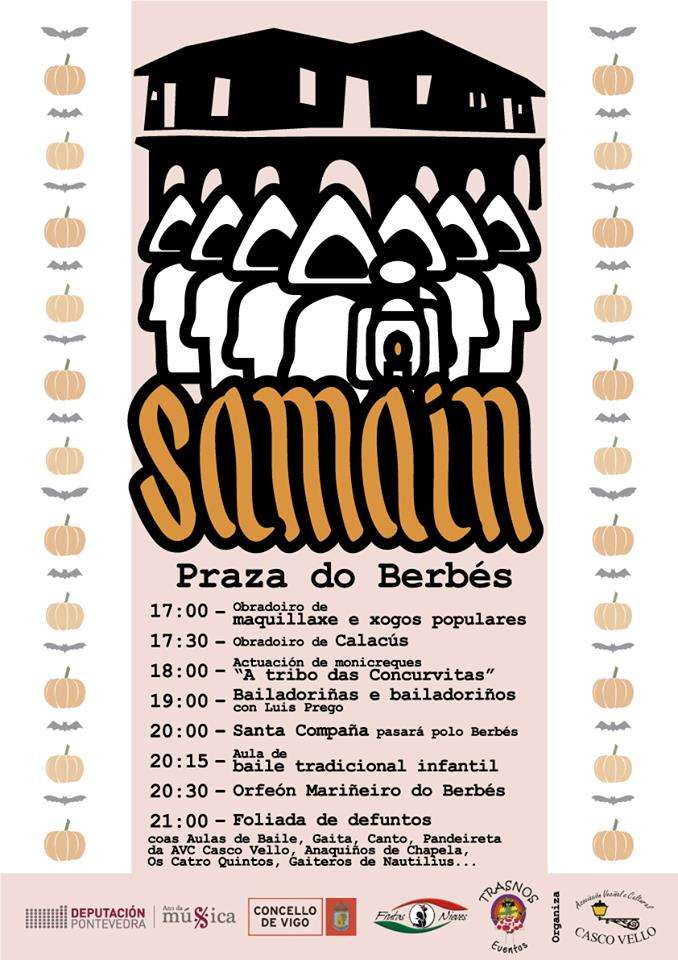 A asociación Veciñal e Cultural do Casco Vello organiza na Praza do Berbés un Samaín que dará comezo ás 17:00 horas con diferentes obradoiros e rematará ás 21:00 horas cunha foliada.