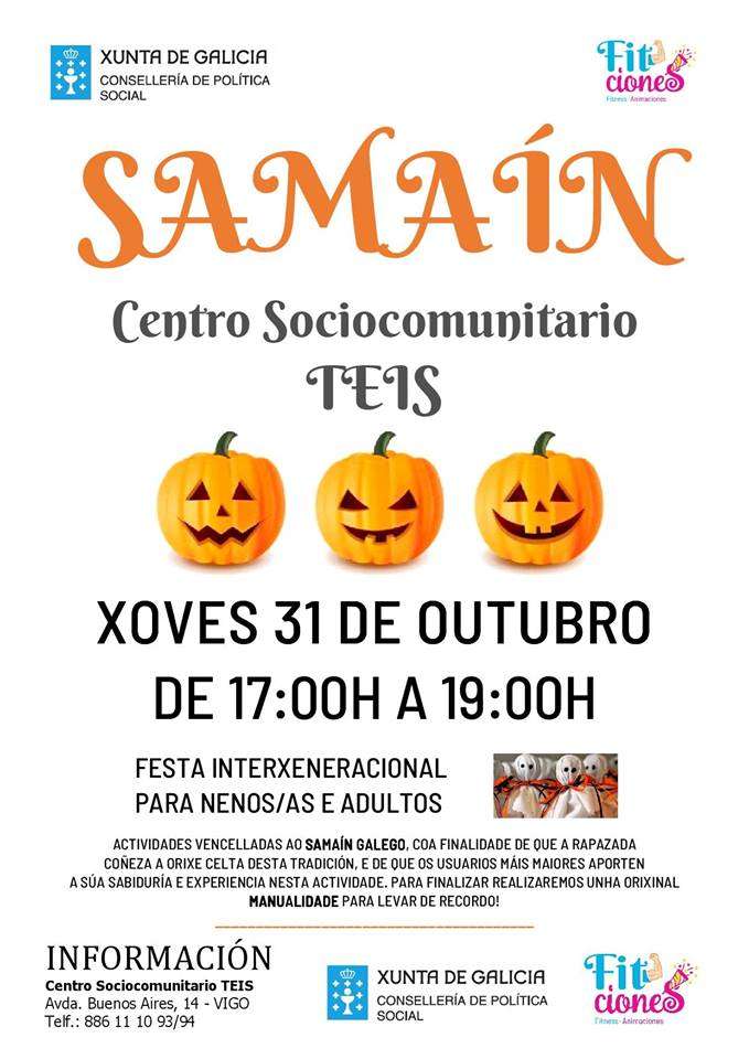 En Teis, o centro sociocomunitario acolle unha festa "interxeracional" para nenos e adultos onde se afondará na historia do Samaín galego e realizarán manualidades.