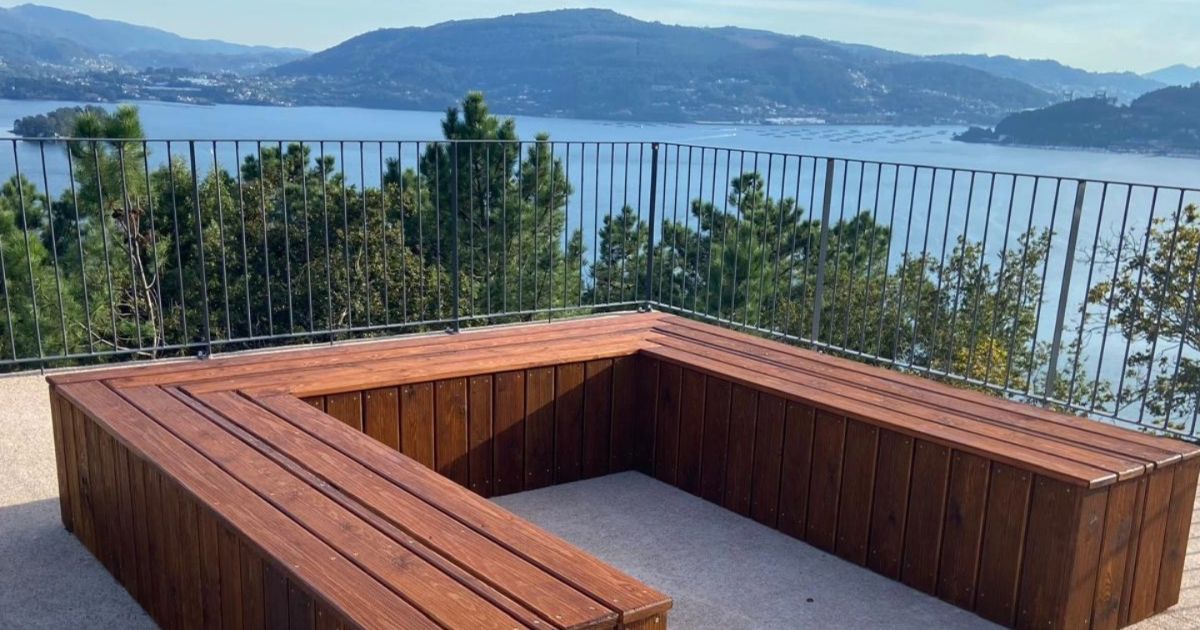 Ahora, unas semanas después, este renovado mirador de Vilaboa, el de Monte do Cabalo, cuenta con un nuevo elemento que da más brillo a este espacio y permite disfrutar de las vistas a la ría de Vigo de una forma más relajada. Se trata de un banco de madera en forma de U que permite a las personas que acuden a este enclave turístico sentarse a disfrutar de la panorámica que ofrece y disfrutar de una conversación si se va acompañado de otra persona.