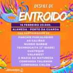 Las comparsas que desfilarán por el centro urbano de A Guarda son: Parchís fuscalheiro de A Guarda, As Galiñas de A Guarda, Mundo Barbie de O Rosal, Technogaita del Clube da Terceira Idade de A Guarda, Guateque de A Guarda, Vala-West de Vigo, A maxia da natureza de O Porriño, Comparsa Talismán de Salceda y Comparsa Ciklón de Tomiño.