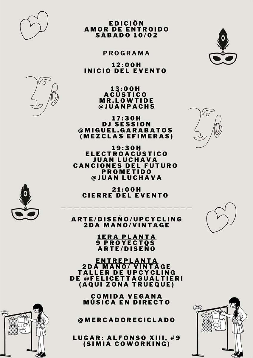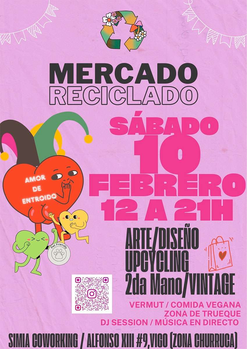 Tras una edición especial en enero, únicamente con artículos vintage y de segunda mano, Vigo se prepara para celebrar San Valentín y Carnaval, las grandes citas del mes de febrero, con una nueva edición temática del evento mensual Mercado Reciclado. Bajo el nombre "Amor de Entroido", esta nueva jornada regresa con las ya tradicionales propuestas de arte, diseño y upcycling, además de artículos de segunda mano y vintage, con "opciones variadas para estos días especiales".