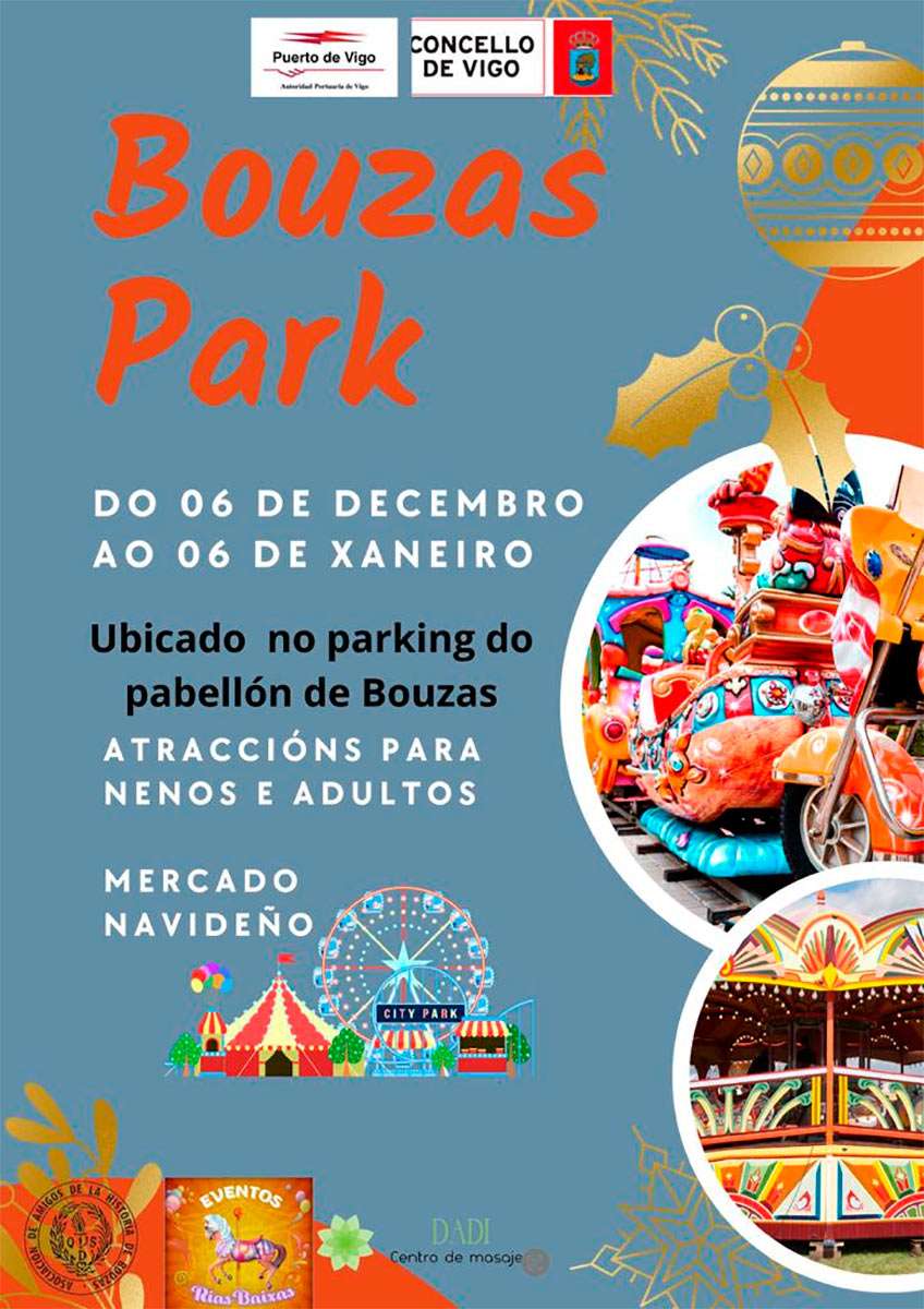 Junto al mercado, también llega el Bouzas Park, un parque de atracciones para público infantil y adulto que estará ubicado en el parking del pabellón de Bouzas. El responsable de Eventos Rías Baixas y del Bouzas Park, Alberto Freitas, avanza que mayores y pequeños podrán disfrutar de las atracciones de feria también a partir del 6 de diciembre y hasta el 6 de enero. Algunas de las atracciones que se instalarán serán el dragón, el scalextric o hinchables. Además, se repartirán vales con descuentos aplicables en las atracciones.