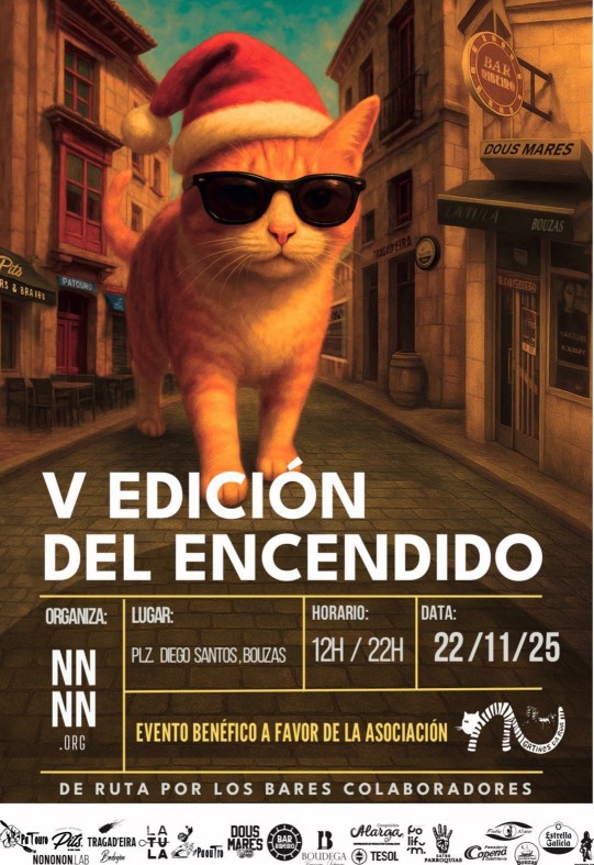 Sin embargo, Bouzas cuenta desde hace años con su particular encendido, que no faltará este año. La asociación NONONON.ORG será la encargada de organizar este evento con carácter solidario. Con la colaboración de Patouro, Pits y A Boudega, llevará a cabo la V edición del Acendido Solidario do Alumeado de Nadal, una iniciativa en beneficio de "Gatiños da Rúa".