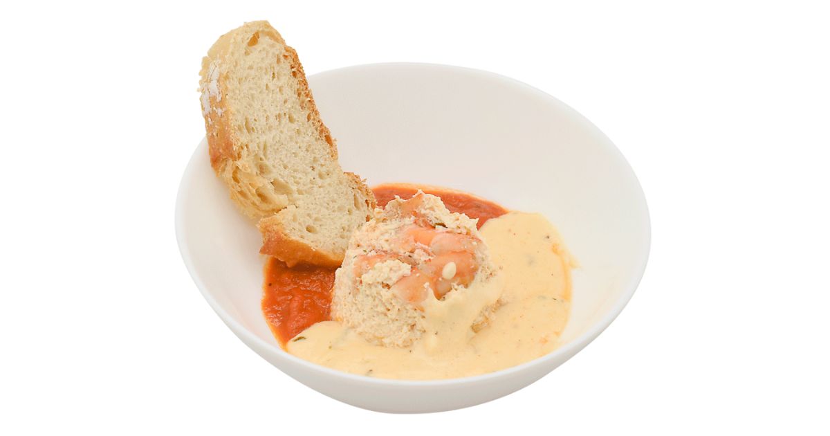 - Ingredientes: Langostinos, leche, agua, sal, pimienta, ajo, queso, tomate.